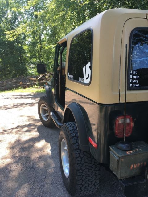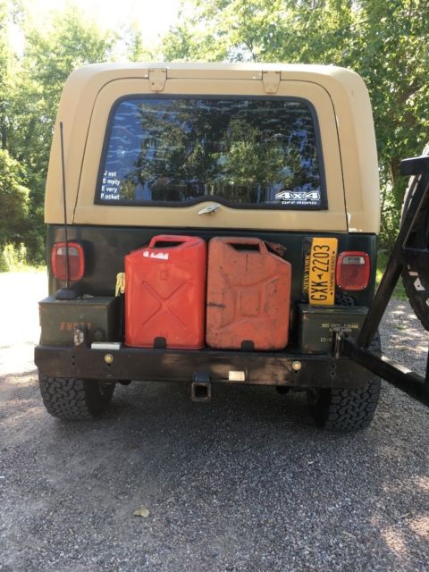 NEW: -AMC 304 rebuilt top end with new lifters, rods, valves. Has rebuilt 2 barrel holley carb and has dual exhaust. Transmission is an automatic 3 speed with a freshly rebuilt dana 300 transfer case. -Brand new Painless Performance wiring harness, so it is rewired nose to tail. All gauges and lights work except the gas gauge and oil pressure, I have the manual to hook these up and may get to it before the sale. -New steering box, coupler, and lines. -Suspension was just put on, old man emu 3" kit from rocky road outfitters which has less then 100 miles on it. Kit came with new leafs, leaf hangers, hanger mounts, hardware, doetsch racing shocks, ubolts and ubolt skid plates. -New BFGoodrich All Terrain ta ko2's (32x11.50x15) with 1000 miles on them -I purchased a Delta Performance dual radiator brushless fan kit with a custom stainless steel shroud. It is wired into the cab with a temp controller to adjust on/off temperatures for both fans as well as fan speeds (works excellent to keep the amc 304 cool when in traffic or slow trail riding in the dead of summer. -New steel brake lines front to back. -Many other nickel and dime parts Things to address: -Speedo gearing is off, very cheap part off novak and easy to install. When at 60 the speedo reads 50mph -All the suspension was redone, an alignment may be a good idea to protect premature tire wear but rides fine as is -New spare, I wanted a matching rim but never got to look for one, rim is the same size as the rest but will need new matching tire Rear bumper is extended to house two jerry cans and two ammo boxes for additional storage such as recovery equipment. The rear bumper includes a spare tire swing gate and has a trailer receiver built in. All seats are in good shape and clean very easily. Tuffy center security console with key. Speedo reads just over 5k and I do not have enough information to determine the actual mileage, but I will assume it clocked over to 105k. Has fresh fluids all around except for the oil which has 1000 miles on it.Jeep will do highway speeds and trail rides with ease. I have a NY title in hand but the jeep is located in Colchester VT as I just moved, if you are within a reasonable distance I will consider meeting you for delivery. Jeep is listed locally in which I have the right to end the ebay sale. Best offer takes the Jeep!Thanks for looking and I will respond to inquiries immediately!!!