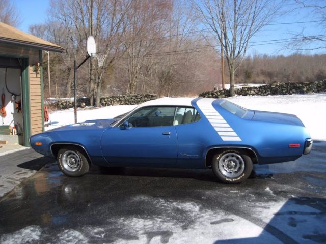 The car has been fully restored with the numbers matching drivetrain including the high performance 400 c.i. big block engine, the 727 automatic transmission with the Slap-Stick shifter, and the 8-3/4" rear end. The engine has approx 2500 miles on it since rebuild. factory Carter thermo-quad carburetor and the original cast-iron exhaust manifolds. As the pictures show, the B5 blue paint and white interior were fully restored to factory condition. I have the original build sheet from under the rear seat laminated, and the original spare tire and jack equipment is still in the trunk.The car runs and drive great. The only reason for selling is because I don't have any room to store it anymore. This is a great opportunity to own a rare, fully restored Plymouth Roadrunner that is ready to drive.I also have a number of rare, factory Mopar parts that are included in the sale. This includes factory headlight trim pieces, a center console, a chrome wheel opening molding, and some other spare original pieces.Additional pics available by request. car is registered in RI and does not currently have a title.Check your states requirements.**Buyer responsible for all shipping costs and arrangements. Willing to deliver locally to a point of pick up with carrier. Cash, or certified bank funds only. Car will be released when all funds clear.Asking $31,500 or best reasonable offer