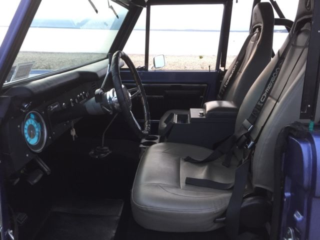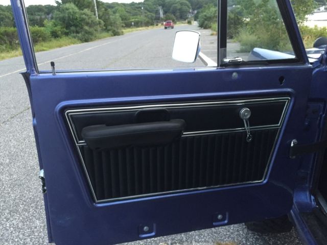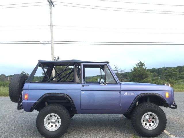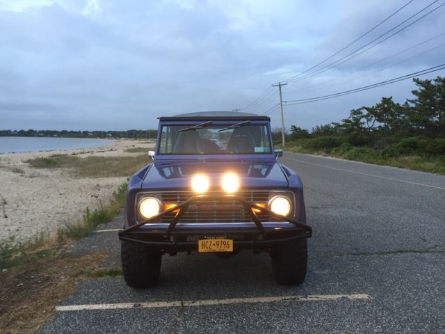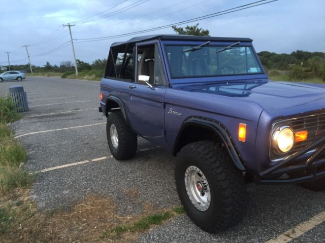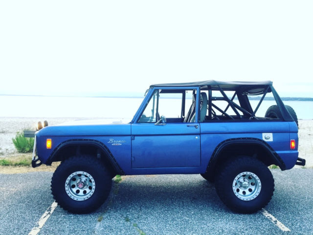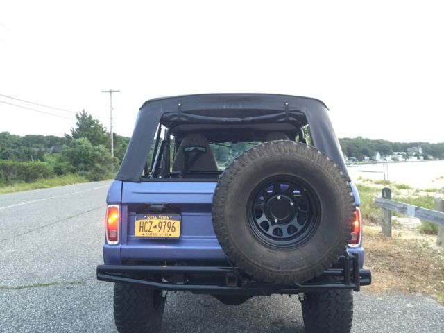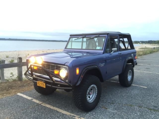 Automatic Original Rebuilt ford 302 engine done in 2013 32000 on the rebuilt 136000 original miles and counting 3.5 inch lift kit 33x12.5 bf tires 15inch Mickey Thompson wheels New radiator New inner fender aprons New heater core and seal kit New Neutral Safety Switch New Voltage RegulatorNew radiator overflow tankNew rear drum brake padsNew 20 gallon fuel tankNew rear wheel bearings and sealsNew batteryNew front driver wheel wellSoft top and Bikini TopNew rear passenger wheel wellFloors are solid Corbeau seatsFlowmaster exhaust Satin Black engine BayRhino Lined and Brand new carpet and floor insulationBrand new front and rear door panelsPioneer Bluetooth CD player with(2) 5 inch speakers in the front, (2) 6x9 inch speakers in the rear and a 10 inch powered subwoofer Truck was painted Mercedes Blue 4 years ago and Paint is a 8 of 10 , it has minor chips here and there.Everything works on this truck except the horn button on the steering wheel so I installed a button on the dash It gets tons of attention I drive this Bronco on a 2 hour round trip every weekend to and from work and I hit speeds up to 60 to 65 on the highway no problemSelling as isIf you have any other questions feel free to email or text me.number six three one - 377- one one four two https://youtu.be/AxgTr8Rq2Ds https://youtu.be/oMw19Qv4ZeI https://youtu.be/u-ZW3m2gmXU https://youtu.be/mipJrAlUmyU