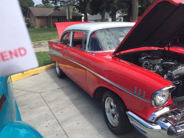 This 1957 Chevrolet Bel Air is one of the most iconic cars ever built and features gorgeous body lines with timeless chrome and stainless accents. This one has been body on restored and upgraded with lots of new driver options to give you a memorable driving experience. The exterior of this Bel Air is gorgeous, with a straight and solid body with great body lines and pane fitment. All chrome and stainless is in great condition. All of the glass has been replaced as well as new seals all around. The interior is in excellent condition. Now, the heartbeat of the Chevy. Under the hood everything is neat and clean. The engine is a powerful '96 Vortec 350 bored over .005, clays timing set, and Ersn roller camshaft. All backed by a rebuilt 700 R4 rebuilt Torque Converter 2000 stall tranny with overdrive. All stainless headers and exhaust. To go along with the A/C it also has Power Steering, Power Disc Front brakes. When you look under it the frame and floors are in good condition. Thanks for looking