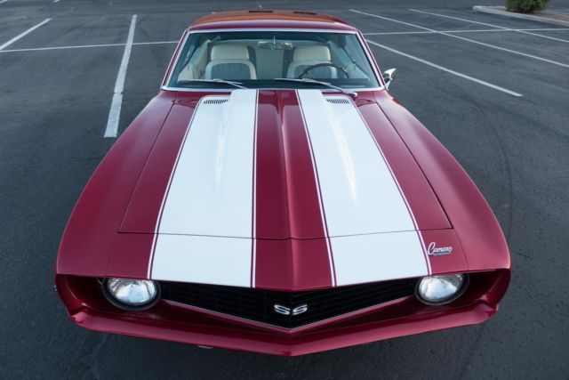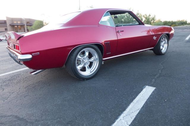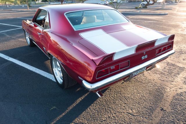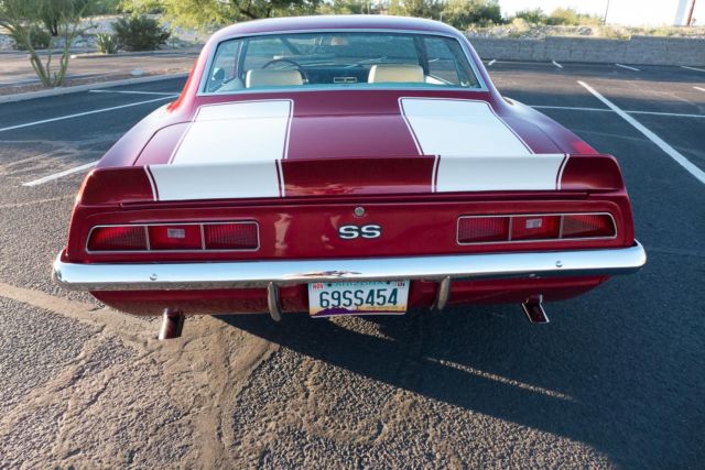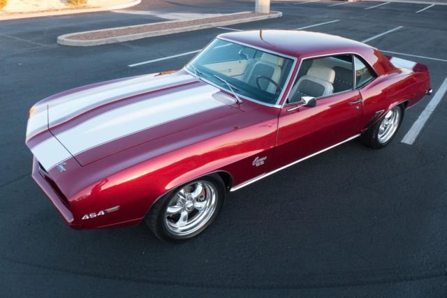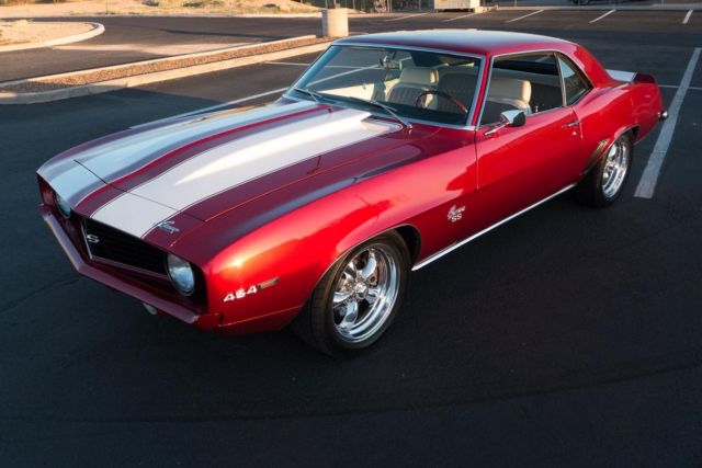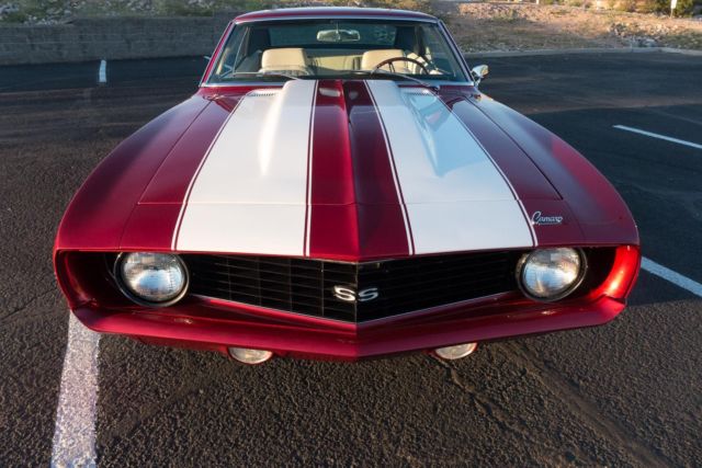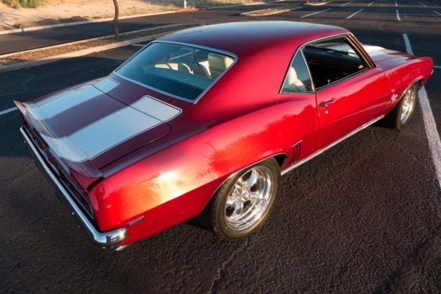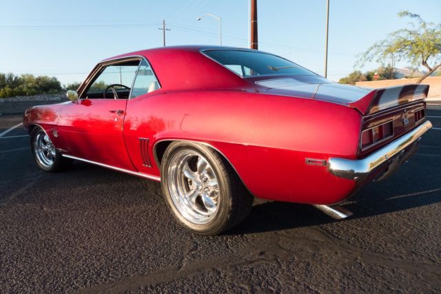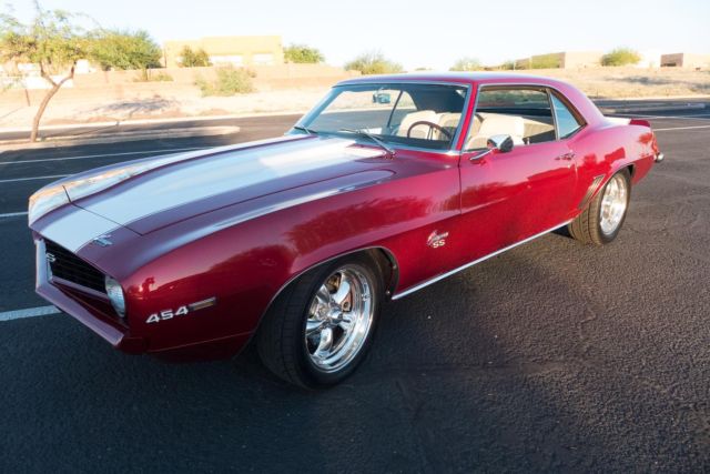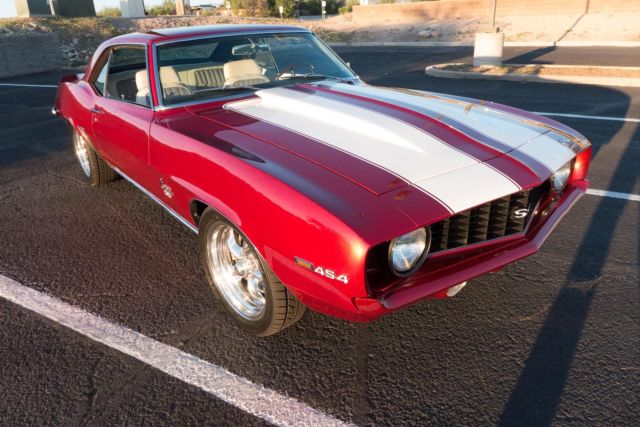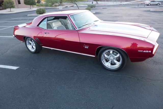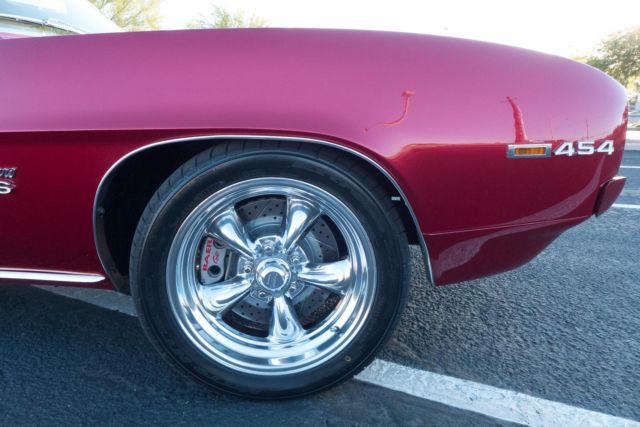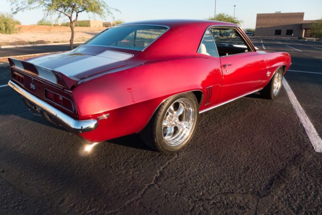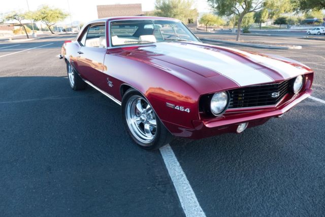 1969 Camaro SS454 Absolutely phenomenal build on this rotisserie Camaro, with no nut, bolt, or screw left untouched.This car is amazing from top to bottom, & will win shows everywhere you go. Only 650 miles since being fully restored.Gorgeous deep Magnetic Red paint with white stripes, color pops in the sunlight, & is a very high end paint job. Car sits on 17" Americans wrapped in Nitto tires. All suspension is brand new, springs are Hotchkis 2 inch drop & urethane bushings.Rear shocks are QA1 adjustable shocks.Front suspension has QA1 adjustable coil over shocks, with 2 inch lowered spindles.Front and rear brakes are 13 inch drilled, & slotted disc brake rotors from Baer, car stops on a dime.Motor is a fresh rebuilt .30 over 454, with big heads & lumpy cam, which really sounds awesome. Estimated 500hp. Edelbrock Performer intake, with a Holley 3310 carburetor, & Holley high volume mechanical pump.All rubber fuel line hoses were replaced with fuel injection hose, to prevent damage from Ethanol fuel. Also fuel injection clamps were added.Transmission is a date code 1969 Muncie M21 transmission.Bellhousing is an aftermarket steel SFI certified racing model.Rear differential is a 12 bolt GM from a 1969 Camaro Z28 with 3.42 gear ratio.Rear axle has Strange manufacturing C-Clip eliminators installed.New factory style wiring harness was installed with console gauge package, interior is all new & features the Black and white Deluxe hounds tooth. There is all new glass, & rubber as well. Power windows front, & rear. Car features vintage air conditioning, that works perfectly.Factory Hurst shifter, & shift knob were installed.Steering box was upgraded to a quick ratio for a Camaro.You name it...this Camaro has it. The best of everything! Turn key ready to go, will not be disappoint. Can be driven cross country, in a heart beat. Please call me, for more info, images, or any questions you may have. Gar 520-235-9699 call, or text.