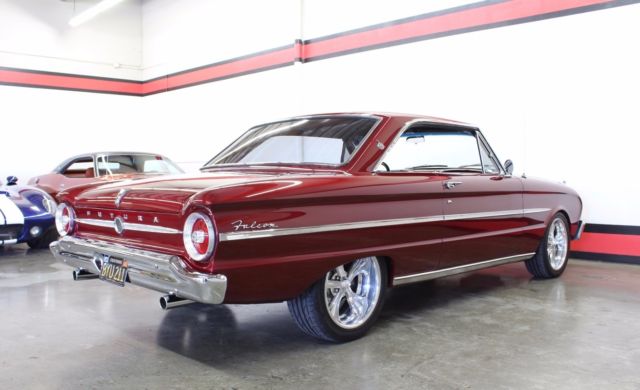 1963 Ford Falcon Resto mod Pro-Touring 2 Door Hardtop This âNo Expense Sparedâ pro touring/restomod build is brought to you by Sixties Muscle Motorsports in Rancho Cordova, California. This meticulous build was completed over the last two years as a shop project to showcase the work that Sixties Muscle Motorsports produces.We started with an absolutely rust free 1963 Ford Falcon 2 door hardtop Futura that we bought in central California. Over 300 hours were put into paint and bodywork alone. Then we transformed this beauty into a pro-touring beast complete with an Eight stack fuel injected 331 stroker, TCI Streetfighter We started with an absolutely rust free 1963 Ford Falcon 2 door hardtop Futura that we bought in central California. Over 300 hours were put into paint and bodywork alone. Then we transformed this beauty into a pro-touring beast complete with an Eight stack fuel injected 331 stroker, TCI Streetfighter AOD, coil-over suspension front and rear, 4 wheel disc brakes, 9â rear-end, Fuel Safe fuel cell, and the list goes on. Then we rewired the whole car with an American Autowire kit, VHX gauges, Vintage Air A/C, power locks, power windows, remote start alarm, retrosound stereo with amp and subwoofer and so on. We also upgraded the entire interior with new carpet, dynamat, new seat covers, custom one piece headliner with sail panels, custom door panels, custom center console, and a complete custom vinyl trunk kit just to list off some of the stuff we did. We took this car to the 21st Annual Mustangs and Fords car show here in Rancho Cordova in June. We won 1st place in our class as well as Best of Show Interior, Best of Show Engine, and Best of Show Non-Mustang. Then we took the car to the 2017 Falcon Club of America National Meet and the car was a class winner even though we showed up after most people voted already. Over $100K was invested in this gorgeous pro-touring build (over $60K just in parts). I have a majority of the receipts still as well. Feel free to check out the full description below, all the pics, and the videos. Donât hesitate to call me with any questions! I can possibly assist a buyer with getting the vehicle delivered to anywhere in the continental U.S. Thanks! Brian @ Sixties Muscle Motorsports 916-382-4344 Click Here for Build Sheet http://sixtiesmuscle.com/builds/