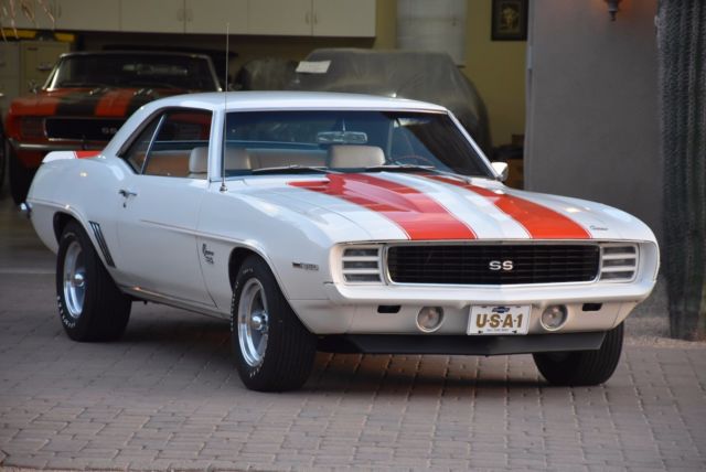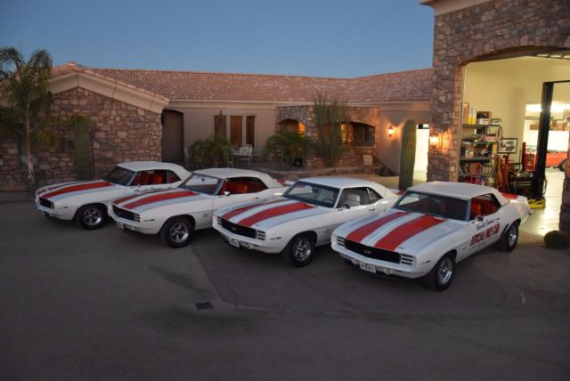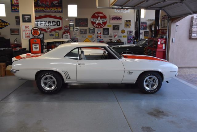 1969 Chevy Camaro Z10 RS/SS Pacecar 4speed Coupe Very rare and real deal 1969 Camaro Z10 RS/SS Pacecar Coupe with factory 727 White buckets and factory 4 speed Factory RPO-Z10 Accents (Pacecar Coupe) Z10 includes: Factory RPO-Z22 Rally Sport Factory RPO-Z27 Super Sport Factory RPO-ZL2 Special ducted hood 350cid engine, Muncie 4speed, 12bolt BT coded 3.55 posi Code 727 white bucket seat interior is all original GM! Factory Air Conditioning Console Rosewood steering wheel Endura bumper Rear deluxe bumper guards Original Muncie 4speed car with original Muncie grommet hole in fire wall and original 4speed tunnel factory cut out Factory dual exhaust car with dual exhaust rear frame bracket Original trim tag reads: TR 727 50 50 PNT 04C Z10 Code 727 - White bucket seat interior Code 50 50 - Dover White top and bottom 04C - built April 4th week 1969 Code Z10 - RS/SS Pacecar Coupe accents 100% original rock solid rust free car and all original GM sheet metal, Arizona Southwest car since new!!! Your choice of as shown Vintage style TTO Torque Thrust 15x7 wheels and F60/G60-15 GoodYear Poly Glas GT tires or original YJ 14x7 Rally wheels and new 235/60-14 BFG Radial TA's with mint GM center caps and mint stainless rings Runs and drive great, and just a nice rock solid driver! Very rare Z10 4speed car!!! Clean and clear Arizona title in my personal name.Comes with Certificate of Authenticity as 100% real deal Z10 RS/SS 4speed 12boltCar can be seen at my home in Desert Hills (North Phoenix)Arizona. I'm about 30 mins North of the Phoenix Sky HarborAirport (PHX)Any questions call Mike Kaiser 602-540-3073