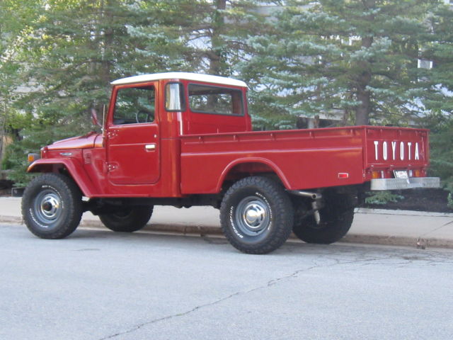 History: I bought this FJ45 about a year ago in Alberta with the idea that I would keep it forever. I've never seen one of these in person in the lower 48 in all my days of working on FJ40's. When I bought her she was in decent shape. Great body and some minor mechanical needs. Restoration (Body & Paint): The entire vehicle was broken down and taken to the sand blaster. From there, each individual piece was etched primed, then sealed, then body, then filler sealer, then painted. All glass, doors, mechanical, etc was taken apart and put back together. The bed liner you see is Hippo Liner - which is a color added product which will never rust, chip, fade, and is also a heat and sound deadener. Hippo put in the cab floor, bed and underside of the bed. Paint code is T-309 which is original to this cruiser. The hardware is all stainless steel to prevent rusting. Engine & Drive Train: Original 2F. New carb from SOR. 4-speed trans. Original t-case. I've replaced all seals that had a leak and put new shoes on the e-brake assembly. Tune, fluids, compression, etc. All good. HFS shocks and steering stabilizer. Original Toyota springs and shackles. Interior: New seat upholstery on the bench seats done professionally. Original seat belts. New SOR headliner. New floor mats. All gauges, electrical, dials, lights, etc all working. All glass free of cracks. All door components and weatherstripping new. New fuel tank & sending unit. Electrical: I replaced all lights and electrical leads. All gauges on the dash and pull switches work properly. Rims / Tires: These are Toyota 15" rims and caps. 33x10.50x15 BFG AT tires. I also have four original split-rims and tires that came on this 45. Terms of Sale: Please be serious. $1000 deposit within 24 hours. No paypal as they only cover the buyer. Wire or cash. Once I verify the deposit you'll receive the title the next day so you know this is a real transaction. Once you receive title, you have 3 days to pay the balance. I've sold a few FJ40's on ebay and this process works well. Vehicle sold as-is. Inspections welcome. You can also visit North40LandCruisers dot com to see some other vehicle I've worked on - fun hobby. Thanks. Overall: Turn the key and she starts right up. Plenty of power, drives and brakes straight. Excellent clutch. Brand new exhaust. Runs perfectly. I can't think of anything the cruiser needs. Questions: Please text or call Dan at 801-556-9399.