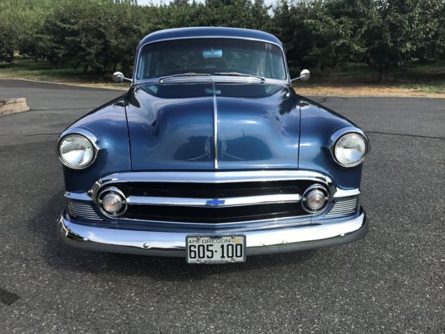 Bob was a craftsman and a perfectionist. If you were building a deck, or organizing a shop, or restoring/modifying a car, and it came up to Bob's standards, you knew you had achieved the ultimate-nobody was going to find fault with your work. He restored and rebuilt numerous award-winning vehicles over his lifetime. This was his last completed project, and it is a real gem. Built as a show winner AND a comfortable driver, it excels in both areas. Starting with a very solid, rust free, original car, he separated the body from the frame and built it from the ground up into a smooth riding, powerful and great looking example of vintage American iron. I combed the car from stem to stern, and the only fault I could find is two very small bubbles in the left rear quarter (see picture). Sadly, he passed away after accumulating just over 8700 miles on this car, and his widow has decided it's time to sell. If you appreciate early 50's GM styling, modern roadability and fine craftsmanship, you'll have to look long and hard to find anything that would come close to this car-and there's no way you could build an equal for anything close to the Buy-it-Now price. No disappointments. GM 350 HO 330 hp cratemotor. TH350 transmission. Cragars. Hot Rod air. Aluminum radiator. Heidts front end and power rack & pinion. Secretaudio sound system. Satellite radio. Nova rearend. Power front disc brakes. Dakota Digital cruise control. Power remote door & trunk locks. 05 Chrysler Atlantic Blue Pearl paint. Pin striping by Spiderman. Lokar column shifter. Tilt wheel. AcoustiShield insulation kit. E-Z wiring and alarm kit.