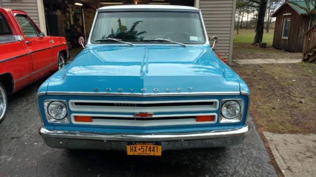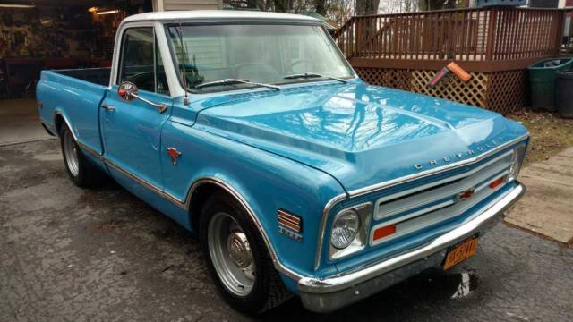 1968 C10 Factory 396 Big Block It has had total restoration and has less the 1200 miles since completed. Truck has everything New over $40k spent on this build One of a kind. Truck has Orig motor completely rebuilt over $6000 Dlrs invested, Built Turbo 400 Trans All rebuilt New 12 Bolt Posi Rear End as well. Everything on her is Redone Front to Back. All New Cross Drilled and Slotted oversized disc Brakes with Ceramic Pads Stops on a dime ;o) So many upgrades All GM belt and pulley system. Occ Lowering kit and Control arms. Aluminum Headers-Occ Brake Booster and Res. All New Interior- Carpets-Matts-Door panels-New Seats - This is a beautiful Trauck ! Truck has Custom made 17's Chev Ralley wheels 12 inch Rears ;o) Really Nice set. She has full Occ Custom suspension products sits just right Rides like New. This was a 24k orig mile truck with NO RUST when project started. Full New Base Coat Clear paint wonderful color GM Blue and White . None Nicer around here There is so much more to list. Selling due to seperation 11 years wasted down the drain with her!!!!!!!!!!!!!!!!!!!!!! Motor has performance cam with roller Rockers - New gas tank with anti sqeek kit- Full stainless exhaust true duals- Tilt Steering Colum- All the chrome is triple plated show chrome. Reduced for quick cash sale 1st $29k Cash Takes Her - I have over $40k into Her Everything is new less then 1200 Miles Hurry She wont last NICE TRUCK !!!!!!!!! PLEASE NO SCAMERS OR OVER SEA BUYERS!!!!!!!!!