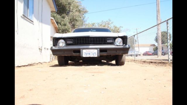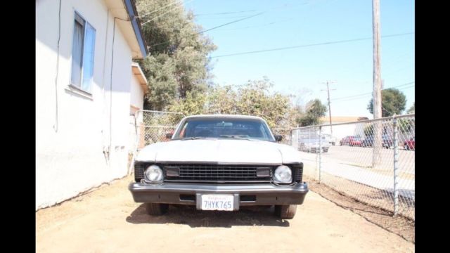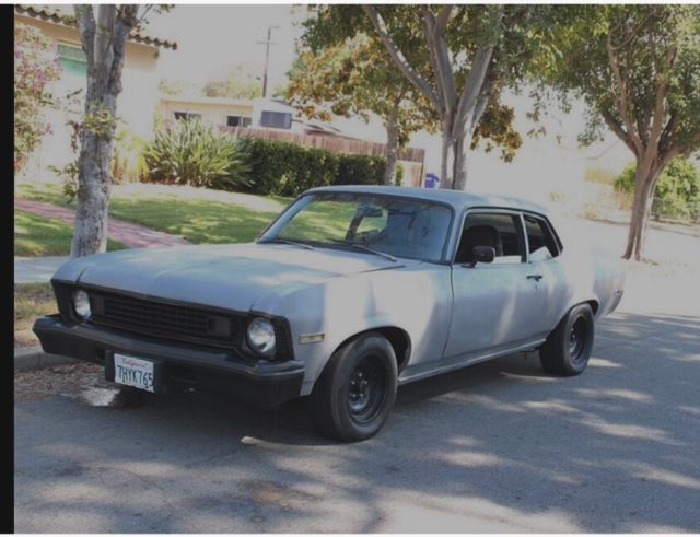 This is a 1974 Chevy nova clean title Has a 305 sbc with TH 350 tran ... It RUNS !!! -Long tube headers -Flow master super 40s -Edelbrock 4 barrel carburetor -2101 edelbrock intake manifold -Car has ZERO rust -All panels are RUST free California car -Has 2 bucket seats one is a bit torn but otherwise good condition I also have the originals in a bag that need to be restores -The front grill is of a 1972 but I have all parts of the original 1974 so you can convert back very easy to do. -All glass windows are original - the dashboard is cracked as all originals has not been replaced - it has brand new carpet installed 4 months ago - it has brand new headliner installed 4 months ago - the driver console works just needs to be screwed on correctly - the bottom of car is clean zero rust - the front bumper shocks have been collapsed to tuck in to give it a more attractive look - I don't have the rear bumper I was looking to install a 72 model one - back seat delete - I have the original interior frames but need to be reupholster - I also have the inner fenders I just removed them to fit bigger wheels Car is sold as is Call me for any questions 6198295355