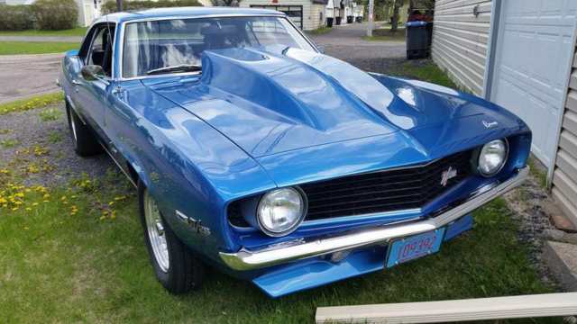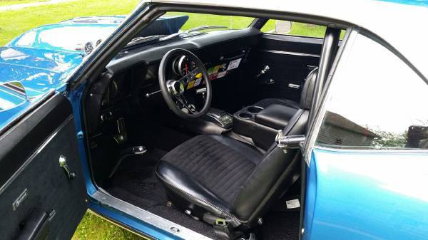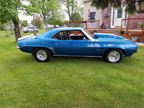 5" tach, low oil psi warning light, Runs on E85, Turbo 350, 3000 stall, Electric fans and Fuel pump, Sump installed in stock tank, 8pt cage with removable door swing outs, Ford 9inch rear end with 4:11 gears, 4 wheel disc brakes, new front tires, rear tires are BFG drag radials, Rear shocks are relocated, Drive shaft loop, New carpet, approximately 700 HP, This car is a BLAST to drive. VERY street friendly with LOTS of power, Cruise the streets or take it to the track and have fun. Have two extra steel cowl hoods to go with car, one with hole cut for a bigger blower or tunnel ram and the other one is the original, - they are blue but have the white stripes from the old paint on the car. Very nice and straight car a real head turner, Car sounds awesome - around 10,000 miles on motor and transmission, (NEW FUEL PUMP & FILTER - NEW 140 amp ALTERNATOR) I have owned the car for 17 years, I dont need to sell but its time to move on and let someone else have fun with it.MESSAGE ME and I will hook you up with some walk around videos of the Camaro - or if you have questions