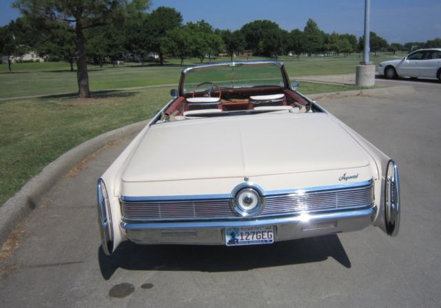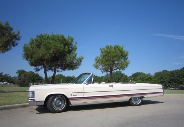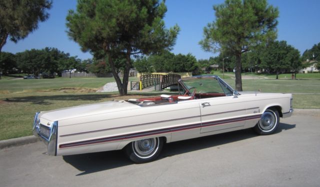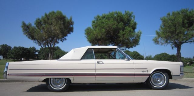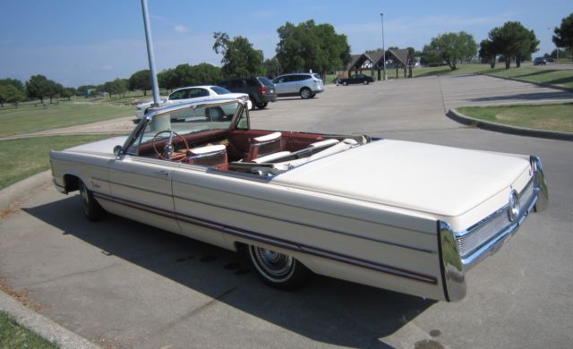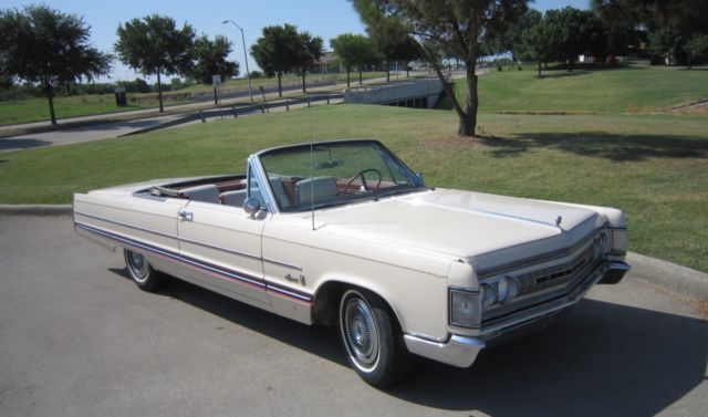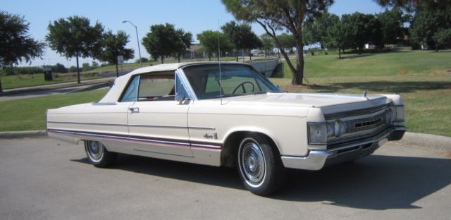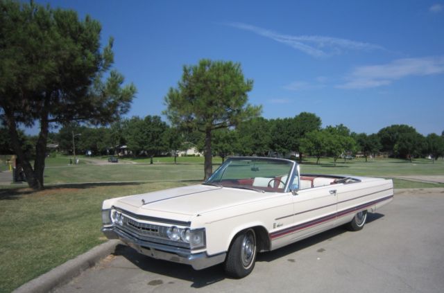 The best year for the Imperial. Only 577 convertibles produced in 1967, so it is a rare find.I am only selling now because I am losing my storage space.It shows very well and it drives great. It goes down the freeway at 80+ mph without any problem and without any wobble.Ivory exterior with red & white interior and white convertible top.Featured equipment includes the 440 cubic inch V8 Engine, Tilt & Telescope Steering Wheel, AM/FM Radio w Power Antenna, Power Disc Brakes, Power bucket seats etc. All power windows operate and the fitment with the top is great.The convertible top is in excellent condition goes up and down as it should. There is no wind leak when in the up position.The AC needs to be charged.The carb has been replaced. The original carb and air cleaner will be included with the car.The tires are in excellent shape. The transmission has been rebuilt ($1500) and the shocks replaced.While this car is not in concours condition, it is in excellent condition for its age. It is a great car to haul a large group around in.Call Steve at 972-900-4142 with any questions. Or email funsuperstore@gmail.com