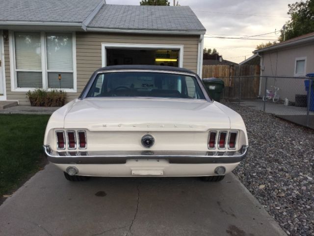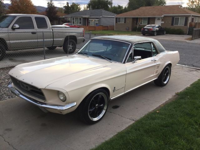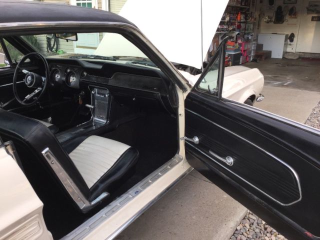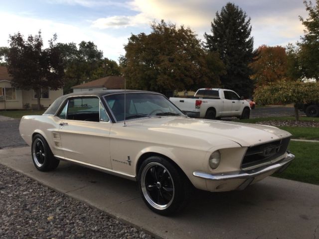 You are viewing a very clean 1967 Mustang Coupe! This Coupe is not like most, it's a great driving/showing car. This Mustang has had some very tasteful upgrades done to it! This 67 Mustang is a Factory "A" code car which means it's a factory 4 Barrel 289 Car, this Mustang retains its original drivetrain with only 65k original miles. Very smooth ride with power steering and auto trans. This Mustang is a Whimbledon white Coupe with black vinyl top, this car has had 1 repainted in its life, vinyl top is original with no rust under. This car retains original trim and bumpers which have few minor scratches. Overall the body of the car shows very well. Interior of the car has been slightly touched, the front buckets have been done to match ext, all seats are in good shape, headliner in in good shape, this car is a factory console car, all retains most of its good original shape. As for the upgrades on the car: This Mustang has been lowered 1in all around with lowering springs, it is equipped with 17 inch American racing wheels all around with brand NEW tires. The car is been equipped with stainless headers, and a full Magnaflow exhaust! Also last but not least it has a Willwood brake system installed, mater cylinder down to the wheel. Honestly this is a great car! Handles like a dream! This is the start to a great street machine! Please message me with any questions or concerns! Glad to help! Please bid with confidence! 100% positive feedback ð