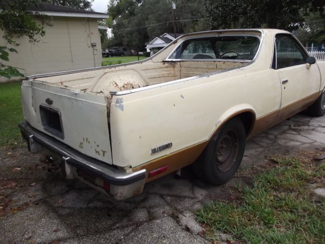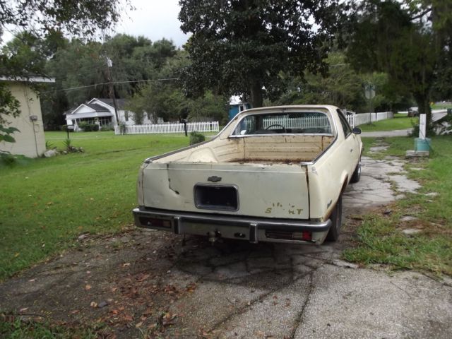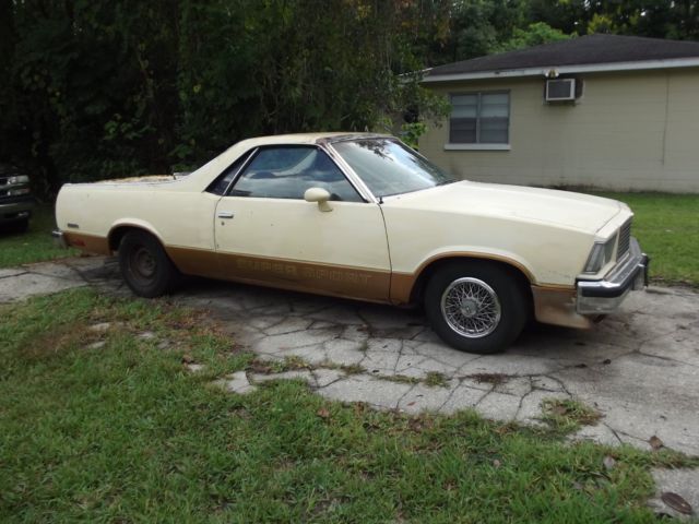 Barn find real Super Sport 1978 chevy el camino project needs a full restoration . has some rust see picksthis is the first year of this body style and the rarest one with only 12,000 SS made unmolested been siting for years was a one owner be for me. car was bought new in Ga and then been in wild wood FL for the last 17 years now in Ocala FL I have a FL title in my name. And YES the car runs STARTS RIGHT UP I HAVE DROVE IT AROWND THE BLOCK AND EVERY TIME I CUT THE GRASS I START IT AND MOVE IT Most of these come out with the V-6 or the 305 v-8 this one rare came with the 350 V-8has the factory numbers matching 350 V-8 4 barrow Auto with factory tact tilt wheel and factory A/C pickup truck has a FL Title in my name car is located in Ocala FL 34479can view it at any time. Have any questions call 352-817-3000. TERMS & CONDITIONS:The car is for sale locally and we reserve the right to cancel this auction at any time before the end of the auction. The car will be made available for inspection by serious bidders throughout the auction. Please e-mail me or give me a call at 352-817-3000. if you would like to see the car. If you prefer, you can arrange to have a qualified, independent, professional mechanic perform a pre-purchase inspection for you (at your expense).Buyer is responsible for pickup or shipping of this vehicle. If you wish to have it shipped using a service, we will gladly cooperate, you can locate shippers by doing a search for âauto shippersâ. however we offer no warranty on the vehicle. This automobile is being sold strictly AS IS/ WHERE IS. If you have any questions or reservations about the condition of the car, you should have a qualified, professional mechanic inspect the vehicle (at your expense). 352-817-3000