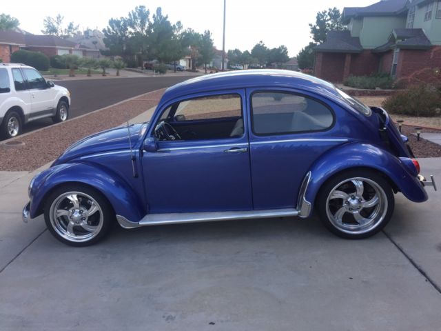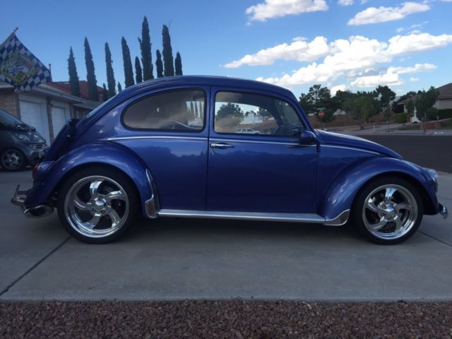 Full asking price includes shipping in the lower 48. I'm selling my 1965 VW Bug. Car had been completely restored inside and out by previous owner. I have always wanted a bug like this and purchased it for some nice weather cruising and the occasional car show etc...unfortunately I lost my girl to Cancer a few weeks ago and I must sell to pay off other bills. It's in great condition! Car has 92K on the odometer and is on the original pan. The paint is Dupont Chromabase 692R Impression Blue. The interior is a gray tweed with blue piping from Sew Fine Interiors. It has a 2387cc Stroker motor with high flow fan kit. It will get up and go! The engine was installed in late 2013, and easily has under 10,000 miles on it. Previous owner only drove it on weekends and I've put less than 300 miles on it since purchase. It has a 4 speed Rancho Performance transmission, and I just replaced the shift bushing and rear coupler, so it shifts flawlessly. It has an Air Kewld 4" narrowed front beam, Air Kewld Air-Ride System, and Air Kewld 4 wheel disc brakes. Stainless steel brake hoses, and hard lines replaced. Oil cooler with thermostatic fan, external remote oil filter, 3 point seatbelts front and rear. Steering box has been replaced, Scat close ratio shifter, Staggered set up... 17" Billet Specialties wheels with 205/40/R17 Federal SS595 tires on the front, and 18" Billet Specialties wheels with 225/40/R18 Federal SS595 tires on the rear. Clutch pedal extender assembly, Kwik Wire harness, recently replaced Duralast Gold battery, JVC stereo, Alpine amp with Kicker speakers front and rear, including sub. New gas tank and electric fuel pump. All fluids changed within the past month. Car was appraised at 17,400.00 and will come with the appraisal docs. I also have the chrome bumper for the rear and an extra deck lid from a 64 convertible with the louvers. Air filters replaced with K&N filters with Pre-filters, but also have chrome housings with filters. Asking 16,900 but will entertain reasonable offers. If you need specific picture, just message me. Will assist in shipping at buyers expense. ***NOTE**** While in great condition, it's not perfect. There are a couple minor rock chips that don't really transfer in pictures but I will make a walk around video and driving video as soon as the rain moves out. Also, the lock cylinders in doors will need to be replaced. Links to YouTube below.. I also have it listed locally, so I will reserve the right to end early if need be... Thanks for looking!! https://youtu.be/Igj-U8x39Xghttps://youtu.be/D2QSwziE4jkhttps://youtu.be/qWPuNYmQEyAhttps://youtu.be/JD9vIfsueAE