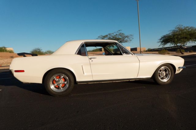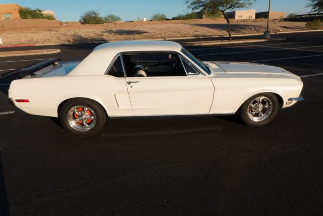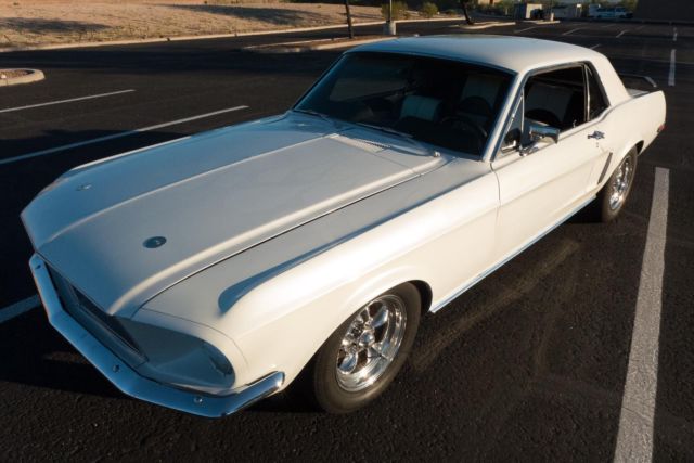 1968 Ford Mustang Hardtop, Turn key Pro touring Awesome Resto mod. Vintage air AC & Heat! Overall awesome looking car, great for cruises, or your local car shows. Built 289 ford with roller rockers, & cam give the car an awesome sound at idle. Has dual flow master exhaust, that give it a great sound going down the road. BE cool aluminum radiator helps cool her down. Engine compartment is very detailed, & looks incredible. Car features a Heidts independent front suspension with tubular a arms, coil over front shocks, rack and pinion steering, & disc brakes. Rear end features an 8" ford with parallel leafs, & drum brakes. Car handles, & drives awesome..! Paint job looks good, driver quality but is def a 10 footer. Pearl white paint, with ghost flames looks great from a distance. There are some bubbles in some small areas and scratches. She does well at local car shows. Has a new black, & white custom interior that looks fantastic. Has new auto meter gauges with a full custom kick ass stereo..! Includes amps, woofers, & six speakers. Car is an overall great condition with some small cosmetic issues. Lots of love, & money has gone into this car over the years. You couldn't come close to duplicating this car, for the asking price! The body, & undercarriage are super solid. Super fun to drive, gets lots of attention, & will be fun at your next car show. Don't miss your chance to own this amazing machine. Please call, or text me for more info, questions, or pictures. Gar 520-235-9699