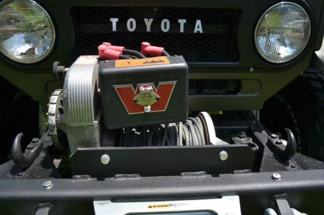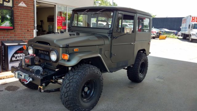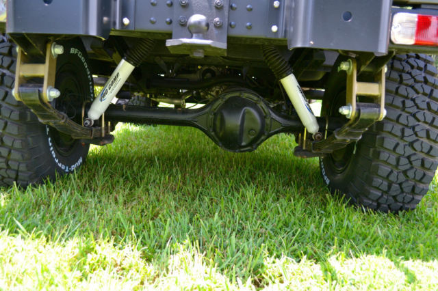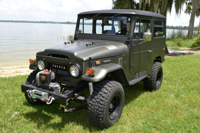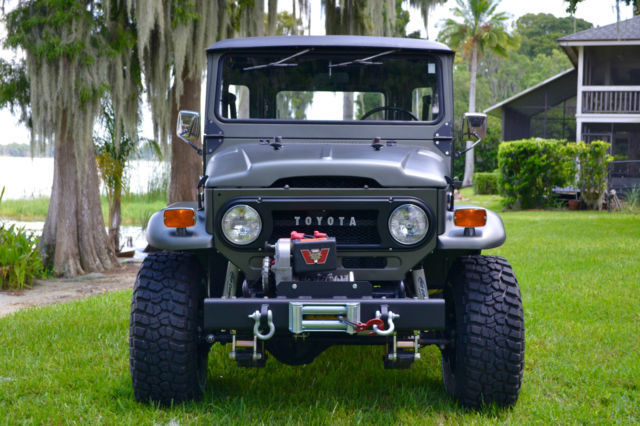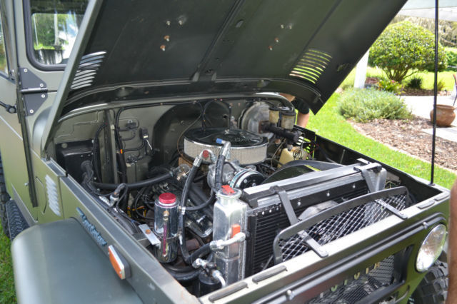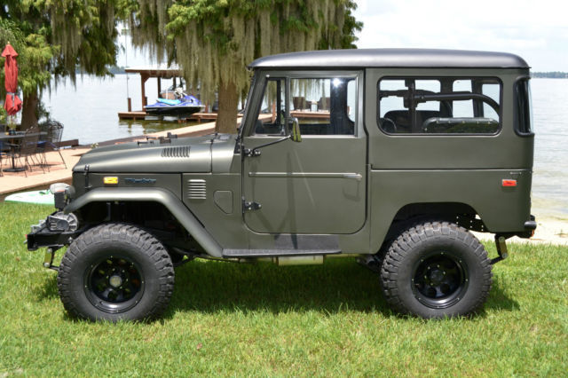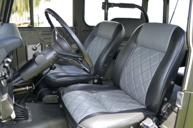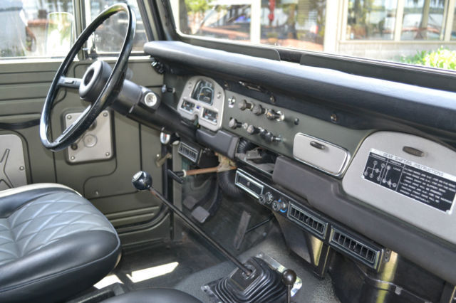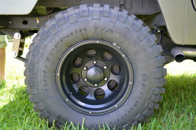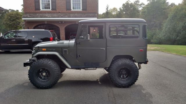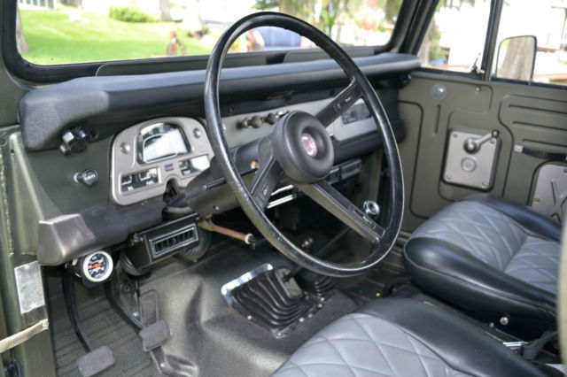 - NEW VINTAGE STYLE UNDER-DASH AIR CONDITIONING UNIT THAT BLOWS ICE COLD! - CUSTOM BLACK AND GRAY DIAMOND STITCHED FRONT SEAT COVERS AND NEW REAR JUMP SEAT COVERS AS WELL - 4" SPECTRE OFF ROAD KIT WITH PRO COMP SHOCKS / WARN LOCKING FRONT HUBS / DUAL SHOCK STEERING STABILIZERS - NEW BODY MOUNTS, IE ROD ENDS, E-BUILT STEERING BOX, FRONT DISC BRAKE CONVERSION, AND STAINLESS STEEL BRAKE LINES - CCOT HELL FOR STOUT TRAIL BUMPER WITH PERIOD CORRECT WARN 9000-lb WINCH - POWERED BY A REBUILT CHEVY 350 SMALL BLOCK V-8 MATED TO THE STOCK LAND CRUISER 4-SPEED MANUAL TRANSMISSION AND TRANSFER CASE - HD ALUMINUM RADIATOR, EADMAN HEADERS, AND DUAL EXHAUST - SOUNDS AWESOME! ON THE VEHICLE IT CURRENTLY HAS BRAND NEW 35âX 12.5â MICKEY THOMPSONS BAJA CLAWS YOU CAN ALSO HAVE THE BRAND NEW 32" X 11.50â B.F. GOODRICH MUD TERRAIN TIRES IT HAD ON IT WHEN I GOT IT (THOSE PICTURES INCLUDED AS WELL) BLACK POWDER-COATED ALUMINUM "ULTRA" WHEELS - NEW CUSTOM FELT HEADLINER AND NEW WINDOW SEAL GASKETS - ALL NEW OEM BODY EMBLEMS - ALL LIGHTS, SWITCHES, WIPERS, GAUGES WORK FINE (odometer currently reads +/- 87,000 miles which may or may not be accurately reflective of the true miles on the vehicle, But this vehicle is mileage exempt in any case)