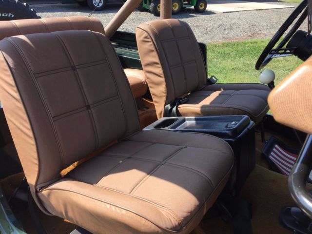 I purchased this Jeep 5 years ago after a spectacular rotisserie nut and bolt restoration was completed. Since then, it lives a VERY good- stored indoors in climate controlled building at my farm along with many other toys. It is literally driven 10-12 times a year. NEVER in any rain, NEVER off-road. Simply a great go-to town cruiser on perfect days. I have an extensive shop with lift and have way overdone all maintenance with annual oil changes that most would consider un-needed. I do this with all of my vehicles. If you are looking for a truly spectacular, head-turning CJ then this the one. I get comments EVERY time I drive it. Starts, runs, idles perfectly. No engine/transmission issues in any way. The engine bay looks great, the carb shows like new as does most of the engine components. The wheels (including mounted spare) are perfect- no curb rash. Zero. The paint is amazing. The interior is the original Levis low-back seats and rear (very rare and desirable on the market if you want to sell them off and pop in new replacements) and they are not perfect- a bit faded but I liked having the originals and think they look great. There is a stereo head unit with wire to the single 4" speaker location, but no speaker. I liked simply listening to the engine so I never added one. The sound with the headers is awesome- not too loud, just right. I do have the white soft- top and doors, as well as the bimini top and also a camp cover that I have used indoors. I took the top off the moment I got the jeep including the hardware as I knew I would only drive it on perfect days. The top and doors are in nice shape and easily re-installed. I have additional photos if interested- just send me an email. Happy to answer questions and encourage inspection. You will fall in love with her! I am either going to get my price, or I will take it off the market. I don't need to sell it- it simply doesn't get used enough warrant keeping it if someone comes along who will enjoy it more- that is great.