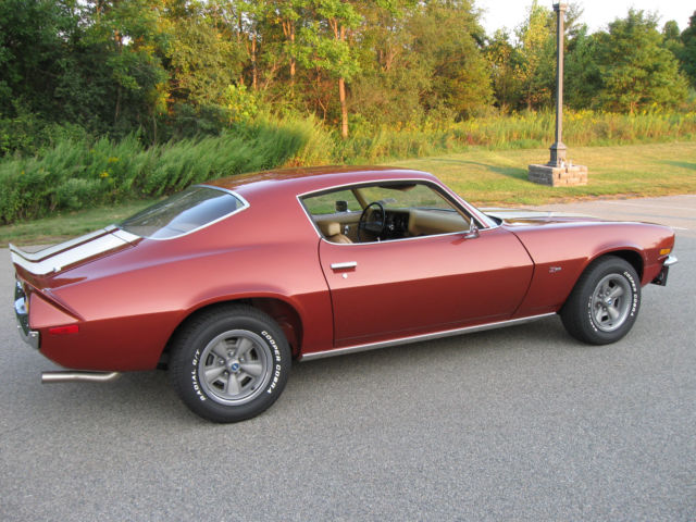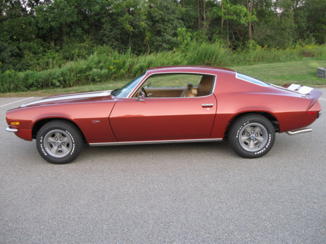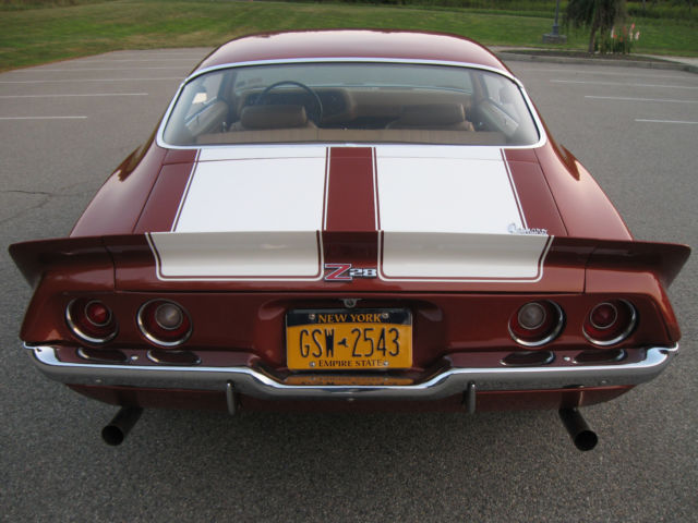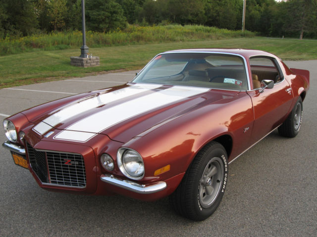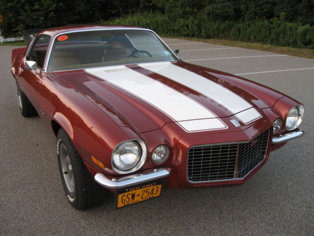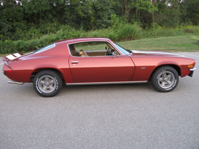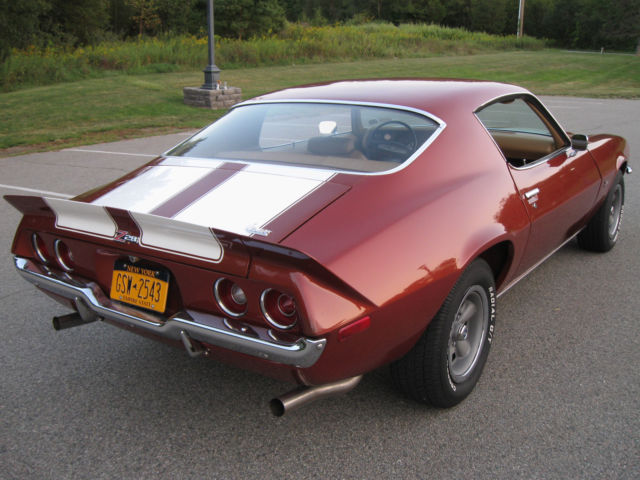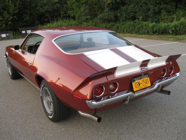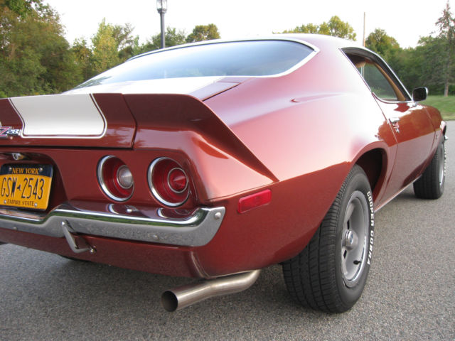 Selling my 1970 Camaro Z28 Rally Sport. This car was restored by the previous owner, finished in 2008. Car has 98,767 miles on the clock. He told me the mileage was original but no other verification of that. Finished in it's original Classic Copper and the standard interior in saddle. I don't know if the drive train is original. Owner said he believed it was but again, not verified. Car runs great, shifts are firm. Believed to have the optional 4:10 gears. Power steering and brakes. Clock was not working when I bought so I replaced it with a reproduction one from OER. After about 5 months that one stopped keeping accurate time though it runs. I have the original clock. Paint is very nice but there's a chip on the driver's door on the edge that was touched up. Also a chip on the edge of the right stripe on the panel in front of the hood that was touched up. The right rear spoiler corner piece looks like it was touched up. The driver's door needs new weatherstripping, it's ripped near the top. Everything works on the car other than the clock not keeping accurate time. Tires are new, have maybe 300 miles on them. I have a spare tire with another matching wheel and a trunk mat. Exhaust system is new also. Car had Flow Masters when I bought it, were too loud for me. Now has a nice sound and 2 1/2 inch stainless steel pipes. Sometimes the trunk lid will not stay up. I have more pictures, including some of the undercarriage. I have described the car to the best of my knowledge and ability. Car is sold as is. No warranties of any kind. I will answer all questions, again to the best of my knowledge and ability. If you're looking for a '70 Z28 you won't find one in this condition at a lower price. Call or text my cell 914 522-7527 from 10 am-8 pm Eastern time or email me at firebrand455@aol.com with questions and/or for more pics. A deposit of $1000 is required within 48 hours after listing ends. Payment by wire transfer is preferred. Inspections are welcome. This car has a transferable registration. Titles are issued for 1973 models and newer in New York.