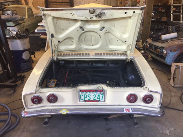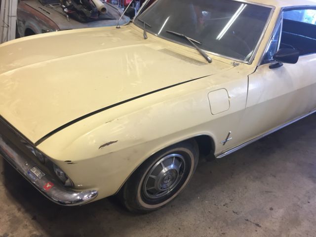 BUCKET SEATS, 4 SPEED, RUNS. Clear title in hand, clean interior in original condition, exterior has normal wear and tear for year. Vehicle runs and is a very complete example of a vintage car. Body is solid and a great candidate for restoration or repair and drive as is. The car was pulled out of a barn where it had sat since 1983. It has been in a shop since being pulled out of the barn.The engine is a 110 hp that was replaced in the early 80's with a new engine from a dealer. It runs amazing considering how long it's been sitting, no knocking, smoke, etc. I put headers Clarks headers on it, as well as many other new parts when getting it running. I was going to restore the car for my wife, but she want's a split bumper Camaro instead. Car was a 1 owner car before I got it. Many new parts are included. See pics. *****Note***** Body has misc. dings and repaired dent in left rear quarter panel, area near bottom front windshield needs attention as well. Brakes need attention, as does the shifting mechanism/shafts bushings. Clarks disc brake brackets are included as well as a new master cylinder. Rear brakes have been replaced with all new parts, but the brake lines still need to be replaced. Please ask any questions prior to bidding, will deliver to local auto transport of your choice Spokane Area. Possibility of delivery for 1.00 loaded mile in an enclosed transport from 99005, this must discussed and payment of vehicle and shipping must be done prior to delivery. ******WA. State. License Plates are not included in auction****** #0144