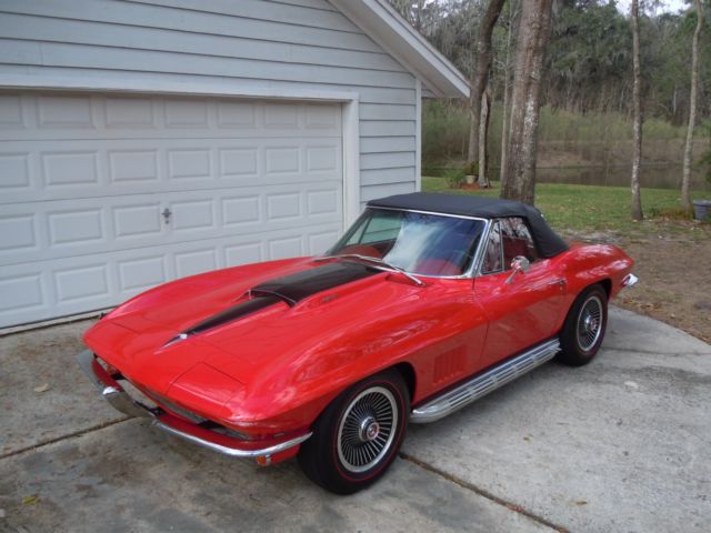 For sale is one 1967 Chevrolet Corvette 427/400 hp convertible. This car has 15 factory options plus ice cold Vintage AC. It has had a full frame off restoration to NCRS specs. A photo album of the restoration is included. It looks, runs, drives, and sounds excellent. It's a gorgeous car and very hard to find with this many options. Options include 427 / 400 HP engine, M21 4-speed transmission, 3:70 positraction rear end, transistor ignition, power steering, power brakes, power windows, side exhaust, aluminum bolt on wheels, Redline tires, auxiliary hardtop, leather interior, headrest seats, AM FM radio, and tinted windshield. The motor is very strong and in combination with that 3:70 gears, the car is very quick. This is a matching number car. A list of all the numbers is attached in the photos. These numbers have been verified by an NCRS restorer. Private owner last 5 years. Title in hand and in my name. I will consider reasonable trades plus cash. Any questions, please email me at gofaster750@gmail.com Please get permission from your wife, mother, or whoever before asking questions or making an offer. A $2,000.00 deposit is required to be wire transferred to the current owner within 24 hours of the end of the auction. This vehicle is being sold as is, where is with no warranty, expressed written or implied. It is the responsibility of the buyer to have thoroughly inspected the vehicle, and to have satisfied himself or herself as to the condition and value and to bid based upon that judgement solely.