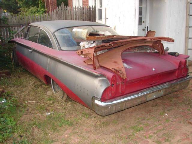 1960 Edsel Ranger two door hardtop standard interior 63A... car VIN number 0U13W700438 one of 295 produced!! FULL DATA:0U13W 700438 63A HM1 24 22J 3 3 Built in Louisville, KY- the 438th Edsel built there for the 1960 model year with a scheduled production date of September 22, 1959.Sold new in Lynchburg. VA at Hammersley Motors. Car spent most of its life there until purchased by The King Family in Botetourt County in the 1980s. We purchased the car from them in 1995 and have owned it since. 292 auto orig Alaskan Gold with Polar White Roof HAVE COMPLETE NEW CORRECT Gold vinyl and brown pebblecloth SMS interior for car (See photos it is the correct vinyl for seats and door panels, vinyl panels and pebble cloth) COMPLETE CAR plus extra set of two door trim! (That is a rare and costly component alone!) Engine trans refurbished during start of restoration... Front clip still off but complete- radiator out of car: we were in process of putting engine components back in car when my father passed. Car ran fine when tested after refurbish... Transmission engaged and shifted without issue. All new sheet metal in rockers and quarter rust patched with sheet metal. Floors are solid. New brake lines included with car- exhaust system refurbish started. Fenders shown on trunk are extras- set for car are in primer and redone shown in separate photo here Car is in primer and stored for last five years. Car is complete. Photo of FINISHED CAR SHOWN is an EXAMPLE OF COLOR AND MODEL IDENTICAL TO THIS CAR WHEN FINISHED ACCORDING TO FACTORY SPECS. Any other questions PLEASE EMAIL US! I'd love to finish the car but time constraints keep me from it - been in Edsel hobby over 25 years and still have other cars just hate to see this one never finished and in the hands of someone who can appreciate it. Buyer responsible for all arrangements and cost of getting the car to wherever they wish it to be taken. Car MUST be picked up within 30 days of sale. Car sold As-is Where-is. PAYMENT DUE BY CASHIERS CHECK or MONEY ORDER WITHIN 72 HOURS OF AUCTION END UNLESS OTHER ARRANGEMENTS MADE BEFORE AUCTION ENDS!