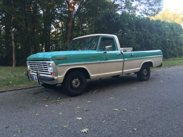1967 Ford F100 Custom Cab/Camper Special pick up truck. Built in Los Angeles.  Originally a Southern Truck.  Not too bad for a 50 year old truck. It is Lunar Green and Wimbledon White. Very cool looking color combination. It's a 6 Cylinder Automatic. The transmission was replaced with a C-4 Automatic  ...