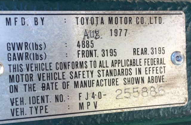 | VIN (Vehicle Identification Number): | FJ40255886 | Mileage: | 46,000 |