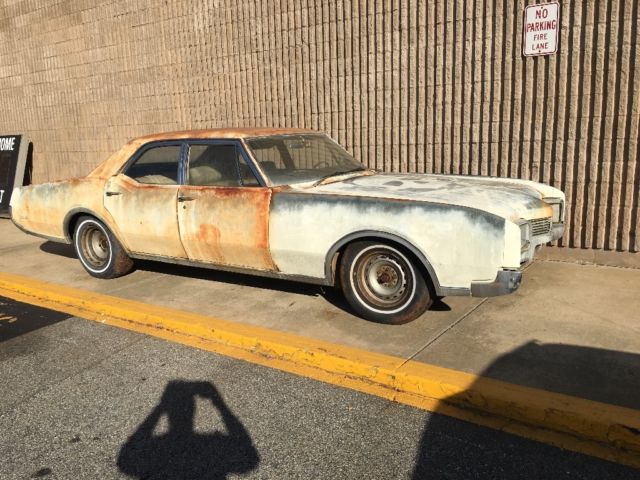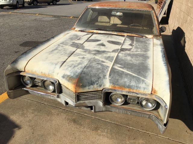1967 Oldsmobile Delta 88 Holiday Super Rocket. Strong 425 V-8 365 HP Engine / 400 Transmission. Mechanically runs and drives, Cosmetically needs various items see pictures and YouTube video in this link. https://youtu.be/5CxXlulIxfs1. Engine Starts easy with one or 2 turns of key.2. Automatic Transmission Shifts gears smooth. 3. Electrical is good with lights working. 4. All glass is good no damage and windows operate easy up / down. All door locks operate. 5. Body Has surface rust needs paint but floor pans are solid, has typical rubber window seal deterioration. 7. Tires are good condition and hold air no leaks. 6. No radio7. Dash has sun and age cracks. 8. Engine sounds strong. 9. Headliner is in fair condition. 10. Mechanically ready to drive, Cosmetically needs paint.11. Great for restore or rat rod. I'm not a mechanic but will try and answer any questions. This was a barn find at auction and have clear title in hand. You are welcome to see vehicle in person with appointment before auction end. sold AS-is where is to highest bidder. Located in Douglasville Georgia, if you would like shipping please contact your own shipper and do research in advance of bidding. Ask all questions and do research in advance of bidding. See video on YouTube of this vehicle recorded in November 2016 at this link. https://youtu.be/5CxXlulIxfs(Troubles with non payers, please do bidding and business like a responsible honest adult) Thank You and Happy Bidding