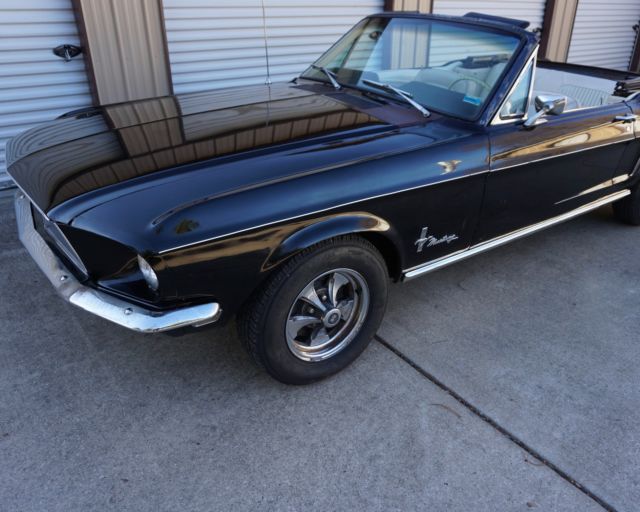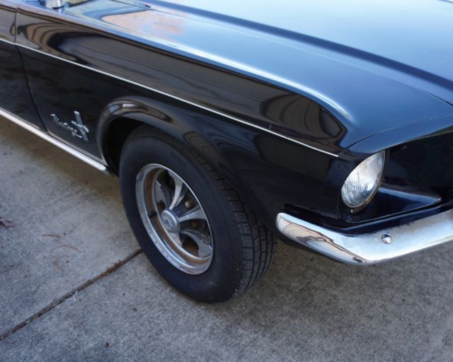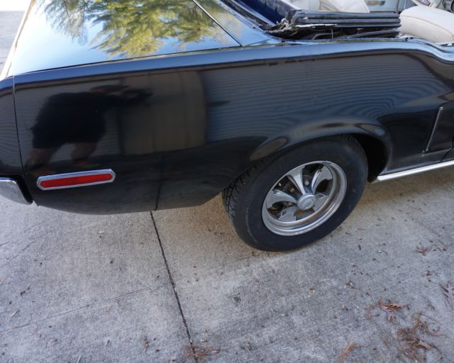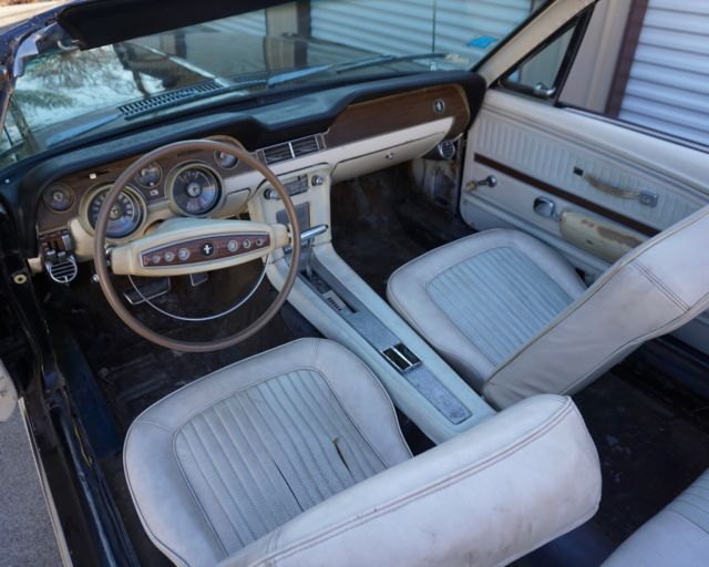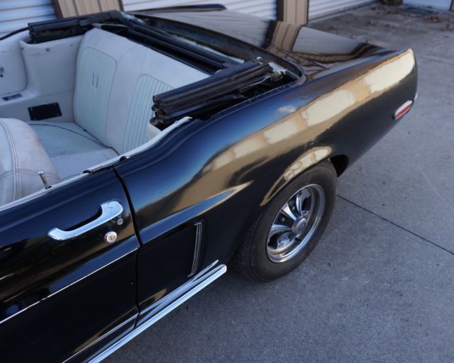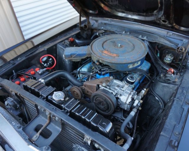 The Warranty plate/Marti show this car's original color was Presidential Blue (Code X) with Parchment Deluxe Interior (Code 6U). The Marti also shows a long list of original options: Parchment Power Top, Visibility Group, 7.35-14 White Sidewall Tires, Console, Power Steering, Air Conditioning, AM Radio, Interior Decor Group, Tinted Glass and Deluxe Wheel Covers. The car's current condition is a running/driving project. The previous owner began the restoration and was unable to complete it. The car is currently painted Raven Black, with the rear quarters having been roughly sprayed recently. In my opinion the car will need to be repainted. The previous owner began repair to the body, working on the lower rear quarters and rear floor pans. His repair to the rear floors can be seen in the photos. The rest of the car including front and rear frame rails, torques and aprons are in good condition. The suspension is mostly the car's original suspension. The rear-end is believed to be original to the car and still shows some factory markings. The interior is mostly complete minus carpet and some trim items. The original gauges and dash bezels are intact, the seats still have the original upholstery and the original full length optional console are still with the car. The top frame is still intact but the car currently does not have a top installed over the original frame. The motor is in very complete condition with power steering and original Ford Air Conditioning still intact. The engine block bears a partial VIN stamping matching the car's VIN. The motor does fire, run and pull the car around but needs some further work to be usable on the street. We believe the C4 transmission and rear end are originals to the vehicle as well. Both are in functional condition. If you have any questions please ask! We are happy to provide additional pictures of any area you may need, again please ask! Everything that comes with the car is shown in the pictures.Car is being sold as-is, where-is with no warranty. Buyer is responsible for pickup and transportation of the vehicle from Gordonville, Missouri, USA. We are happy to help arrange transport, and can assist with shipping the car anywhere in the world. $500 Non-Refundable deposit due within 48 hours of winning bid. Vehicle is for sale locally and we reserve the right to end the auction at any time.