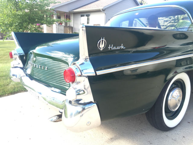 1960 STUDEBAKER HAWKTHIS A ONE OWNER CAR - ORIGINALLY ORDERED FROM SIMONSON MOTORS IN BENSON, MINNESOTA (STUDEBAKER AND OLIVER TRACTOR DEALER)THIS CAR WAS RESTORED IN THE 1980s AND IS STILL IN NICE DRIVING CONDITION. NOT CONSIDERED 'SHOW CONDITION', BUT NICE DRIVER.THIS CAR WAS ORIGINALLY 'WILLIAMSBURG GREEN' AND WAS REPAINTED THE SAME. IT HAS SCRATCHES, SCRAPES, CHIPS ETC FROM MANY YEARS OF USE SINCE THEN.A BUFF, POLISH, WAX AND SOME TOUCH UP PAINT COULD MAKE IT VERY NICE.IT HAS REPLACEMENT FIBERGLASS FENDERS AND THE FLOOR PAN WAS PATCHED OVER. THE LOWER DRIVER FENDER GOT LOOSE AT SOME POINT, CAUSING THE DOOR AND FENDER TO BIND, CREATING A SCRAPE THERE - SEE THE CLOSEUP OF THE THAT AREA.THE INTERIOR WAS REDONE FROM HEADLINER TO CARPET.IT IS ALL STILL IN GREAT CONDITION. EXCEPT THE CARPET IS A BIT FADED. SOME EDGES OF THE DOOR PANELS HAVE BEEN 'GLUED' TO THE DOOR IN SOME PLACES.ALL THE GLASS IS INTACT AND IN GREAT CONDITION.(THE DRIVER DOOR WINDOW NEEDS HELP WHEN GOING UP AND DOWN)THE CHROME IS NICE ON THIS CAR WITH ONLY MINOR PITTING IN A COUPLE AREAS - LOWER OUTER GRILLE SURROUNDS, TAILFIN ENDS.BUMPERS ARE STRAIGHT, SHINY AND IN GREAT CONDITION. (MINOR BLEMISHES ON LOWER REAR BUMPER TO THE RIGHT OF LICENSE)THE TRUNK FLOOR IS SOLID AND APPEARS TO BE ORIGINAL.THE TIRES ARE COKER CLASSICS PURCHASED IN THE 1980s AND ARE IN GOOD CONDITION - HOWEVER, BIAS PLY TIRES OF THIS AGE SHOULD PROBABLY BE REPLACED IF YOU PLAN ON HIGHWAY DRIVING. ORIGINAL 'SWEEPSTAKES' 289 V8 WAS REBUILT AT THE TIME OF RESTORATION.STARTS RIGHT UP. RUNS AND DRIVES GOOD.THE IDLE IS A BIT HIGH, BUT IT HASNT BEEN USED MUCH IN THE LAST FEW YEARS SO IT PROBABLY NEEDS TO BE TUNED (TIMING, CARB TWEAKING OR REBUILD.) BELIEVED TO BE 139K MILES. HAS AN EXHAUST LEAK AT THE LH MANIFOLD DONUT SEAL.THIS CAR IS EQUIPPED WITH THE 3 SPEED MANUAL TRANSMISSION AND OVERDRIVE.WHICH IS GREAT FOR KEEPING UP WITH TODAY'S TRAFFIC.(SHIFTER IS 'ON THE TREE')PLEASE SEE MANY MORE LARGE FORMAT PICTURES BY CLICKING HEREBUYER WILL NEED TO COME GET IT (IT IS IN MID MINNESOTA 56379)OR YOU WILL NEED TO HIRE A HAULER. COST OF SHIPPING DEPENDS ON YOUR LOCATION AND SHIPPER YOU CHOOSE, SO PLEASE KEEP THIS IN MIND WHEN BIDDING. (CALL AND GET SOME ESTIMATES BEFORE YOU BID!!)BUYER HAS 30 DAYS TO PICKUP CAR.AFTER WHICH, I CHARGE 100.00 PER MONTH STORAGE FEE. 500.00 DEPOSIT MADE BY PAYPAL REQUIRED WITHIN 24HRS OF AUCTIONS END. THE REST TO BE PAID WITHIN 7 DAYS.IF ONE OR BOTH OF THESE ARE NOT MET, CAR WILL BE RESOLD.GIVE ME A CALL WITH ANY QUESTIONS YOU MAY HAVE.GREG AT 320-282-2759