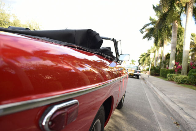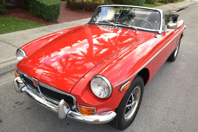 1979 MG MGB Roadster See Video: Up for sale is a beautiful 1979 MG MGB Roadster with original milage of 44,130. This was a Mecum Auction car! This Car drives exceptionally well, you can take it to the car shows & for weekend cruises. Definitely gets a lot of attention & questions at the cars and coffee. The MG is powered by itâs 1.8 Liter engine, It moves pretty quick! It has a 4 speed manual transmission. Engine Bay is well detailed. Has a nice exhaust that sounds really nice. See the video. This is an original car meticulously kept by its previous owner. Previous owner had put the early MG-B appearance with original MG-B Chrome Bumpers, and a new top was put on. The Body is straight as an arrow. All doors, trunk, hood are all aligned like they should. It has always been garage kept and well taken care. All the exterior chromes are in great shape. The red paint is still high quality and has a nice mirror finish to it. The Interior is splendid and contrast well to the exterior red paint, black upholstery has been fitted, and tastefully done, and overall condition looks super nice. No tears on the seats. All the glass and chrome trim are very nice. Top folds up and down with no issues. Woodgrain shift knob. Iâm located in Miami about 30 minutes away from the airport. Feel free to come see the car in person. Any inquires email me. $500 non-refundable deposit required within 24hrs of buying. Sold As-is. Thanks for looking. If youâre looking to finance I would recommend JJ Best. They can finance your classic car or hot rod and are very pleasant to work with. Contact info: Just message me for more information