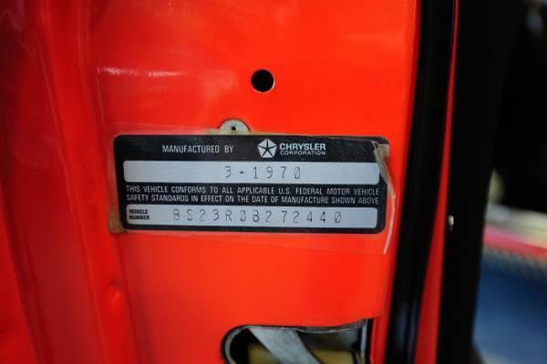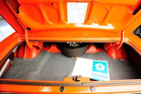 View Our eBay Store (405) 785-4216 Call or Text "71373" ✕BACKNEXTBACKNEXTBACKNEXTBACKNEXTBACKNEXTBACKNEXTBACKNEXTBACKNEXTBACKNEXTBACKNEXTBACKNEXTBACKNEXTBACKNEXTBACKNEXTBACKNEXTBACKNEXTBACKNEXTBACKNEXTBACKNEXTBACKNEXTBACKNEXTBACKNEXTBACKNEXTBACKNEXT Image 1/24 Image 2/24 Image 3/24 Image 4/24 Image 5/24 Image 6/24 Image 7/24 Image 8/24 Image 9/24 Image 10/24 Image 11/24 Image 12/24 Image 13/24 Image 14/24 Image 15/24 Image 16/24 Image 17/24 Image 18/24 Image 19/24 Image 20/24 Image 21/24 Image 22/24 Image 23/24 Image 24/24 View All Images 1 of 24 | View All Images 1970 Plymouth Hemi Barracuda@@@8647894@@@ Stock #: 2440 Exterior Color: Orange Interior Color: Black Body Type: Coupe Transmission: Manual Drivetrain: RWD Fuel Type: Gasoline Engine: 426/425 HP Hemi Title Condition: Clear Warranty: AS-IS Vehicle Description Original and un-restored with the exception of minor paint work on the right side only.36,000 original milesDocumented by Roger Gibson ( Also has Galen Gover Report.)All original sheet metalDocumented ownership history since newOne of 284 4-speed Hemi Cudas produced in 1970Original matching number drivetrainExcellent original floors, trunk floor and extensionsDate coded suspension and mechanical componentsExcel...lent original seat covers, carpet, seat belts and headlinerThe tires were changed once and the car sits on 1976 dated Goodyear Polyglas tires426/425 HP Hemi engineDual 4-barrel carburetors4-speed manual transmissionHurst Pistol Grip shifterFactory Shaker hood carA34 Super Track Pak with 4.10 gearsPower brakesBlack bucket seat interiorRallye wheels Vehicle Warranty AS-IS Terms and Conditions Payment Options We accept the following payment methods: - Cashier's Check/money order- Cash (in person)- Personal check (once cleared) Vehicle Pickup & Shipping All shipping charges are buyer's responsibility. General Terms Notice to Bidders: All of the vehicles we list on eBay are for sale locally. We reserve the right to end an auction early. All cars are immediately ready for delivery upon sale. Deposit: We require a non-refundable $500 deposit within 48 hours of winning the auction. Please call to make arrangements for payment. Payment Types: Cash in person, Certified Funds, Institutional Financing All sales transactions must be completed within 7 calendar days of auction close. Prices subject to change without notice and do not include Title, License, Registration Fees, State or Local Taxes or Processing Fees, if any. Please contact seller first for vehicle availability. Although every effort is made to present accurate and reliable information, use of this information is voluntary, and should only be deemed reliable after an independent review of its accuracy, completeness, and timeliness. It is the sole responsibility of the customer to verify the existence of options, accessories and the vehicle condition before time of sale. Any and all differences must be addressed prior to time of sale. No expressed or implied warranties, including the availability or condition of the equipment listed is made. EPA mileage estimates for comparison purposes only. Actual mileage may vary depending on driving conditions, driving habits, and vehicle maintenance. Fees and Taxes Sales tax, title, license fee, registration fee, dealer documentary fee, finance charges, emission testing fees, and compliance fees are additional to the advertised price. Vehicle is listed locally, we reserve the right to end the auction at any time.