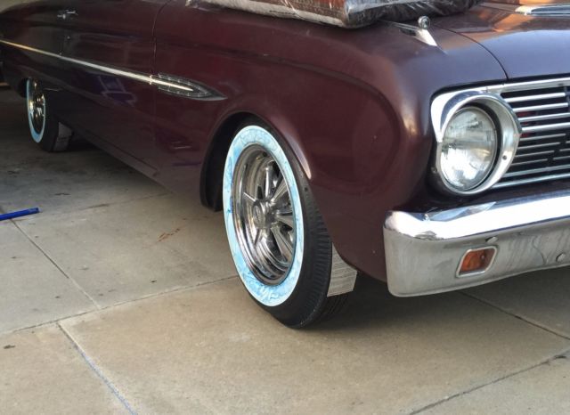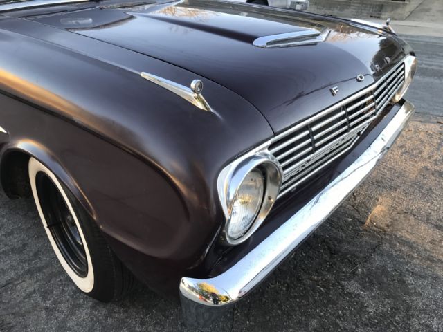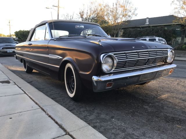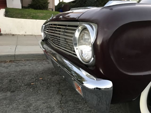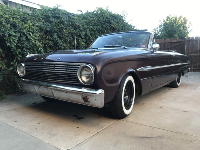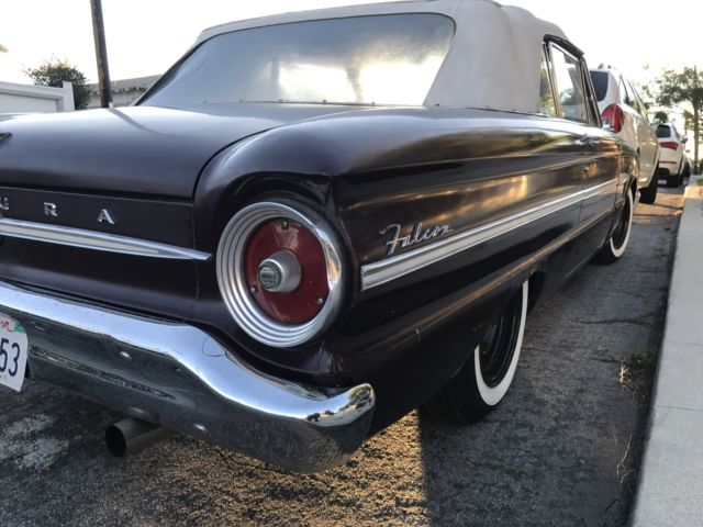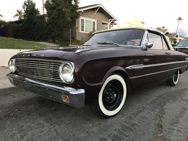 This Falcon is one of the most stunning and rarest 1963 Ford Falcon Futura Convertible. This is really where the pony car era started, falcons are the same chassis and engine as the first Ford Mustangs. This falcon is not to be compared with 6 cylinder Falcons, this one is a muscle car loaded with a solid V8, headers, dual exhaust and 3 speed automatic transmission and a stock 1963 Sprint rear-end (56.5â) giving you more clearance for wider tires. This Falcon it's nearly identical to a Sprint version. Includes front disk brakes, the color is an original burgundy with a white automatic power top. The paint job isn't perfect but from a few feet away looks great. This falcon has ton of character, I get tons of compliments every single time I drive it. - Runs excellent. the sound is totally off the charts. - The C4 Automatic transmission is rock solid. - The car is ready to go! Starts right up. - Spent over $3,500 on the brand new interior, the interior is excellent upholstery, carpets, new door panels, new armrest, kick panels with speakers. - The white wall tires have about 300 miles - Headers and Dual Exhaust are about 8 months old - New aluminum radiator - The power convertible top works excellent. The hydraulics operate as they should. - Front wheel alignment was done 2 months ago, Coolant, oil, filters, hoses and belts, plus plugs, points and condensor are all new. - The glass is in good condition. Windows operate properly. - Weatherstrips and window wipes havenât been installed, they been sitting in my garage over a year - All chrome is in good conditions. - The radio is a stock Radio, not connected to speakers but works. - Have tons of receives and documentation - The California title is clear and all documentation is included. No back fees are due. - Wheels are 14â vintage ford steelies have an extra set of Cragars wheels in case you donât like the stock steelies. - New coil springs, new front and rear shocks, includes rear air shocks. See the Falcon on Youtube https://youtu.be/9apSBjckRcs