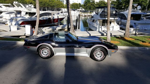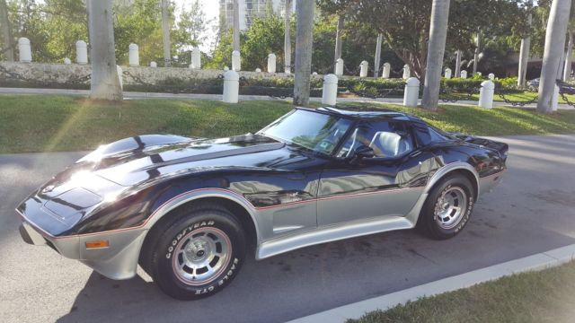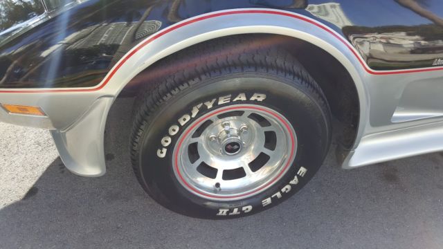 The battery is brand new, the transmission was replaced professionally 2 years ago, a new alternator was installed and the pop up headlights work great... All to say it is a well taken care of collectible. Is it in perfect shape? No, the paint is original (waxes nicely!), the rear view mirror is unglued, and I only have the driver's side T-top. But it has been garage kept under a custom cover, oil changed regularly despite few miles on it, and my mechanic has put his kids through school maintaining it. It is a wonderful and fun car. By 1978, the Chevrolet Corvette had already been in production for 25 years which is much longer than most models and once again the Corvette was honored to pace the famous Indy 500. Chevrolet took the opportunity to commemorate the Anniversary event with a spectacular Pace Car Edition. Since Chevrolet had 6,200 dealers at the time, the decision to build a special limited edition so that each showroom could have at least one. Today they have become quite sought after in the collector world with only 6,502 being produced. Indy-500 Pace cars featured Black/Metallic Silver two-tone paint which was first two-tone paint option offered by Corvette since 1961. Other features were the unique front and rear spoilers, polished aluminum Red-stripe wheels, mirror-tint roof panels and special âclam shellâ contoured sport seats finished in Silver Leather. The most spectacular new design styling was the âfastbackâ rear end having a large rear window, reminiscent of the lines of the mid-'60s, that was beneficial for both aerodynamics and increased usable luggage space while improving rearward visibility. Other desirable options include air conditioning, power windows and door locks, tilt-telescopic steering column, and cruise control. Happy bidding, enjoy this classic, and let me know should you have questions or want more pics!