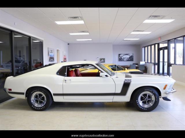 UNRESTORED!! ONE OWNER!! 4TH FROM LAST BOSS 302 EVER MADE!!!! 1970 Ford Mustang Boss 302 2-Door Coupe Exterior Color: White Interior Color: Red Stock Number: 206596 Mileage: 78,000 Fuel: Gasoline Transmission: 4 Speed Manual Title: Clear VIN: 0F02G206596 40 Full-Size Photos Vehicle Features & Options Ask the Seller a Question Email this to a Friend Start Credit Application Vehicle Description Fully documented history, purchased new by the original owner until his passing in 2011; then his wife kept the car until 2015. It is documented as the fourth-from-last Boss 302 built in the production run and is the next-to-last listed in the Boss 302 Registry. Still has the owners department of defense sticker on the front bumper. It may be one of the last Boss 302s still existing that remains almost completely original and unrestored. Finished in Wimbledon White with black Boss 302 striping and an extremely rare code-BE Vermillion vinyl interior. The car remains unrestored, retaining 90 percent of the original paint and interior, glass, stainless, undercarriage, trunk and spare. In 1975, the original engine was removed and replaced with a new short-block assembly while retaining the original intake and exhaust manifolds, rev limiter, emission-control equipment and rebuilt original heads. It comes with extensive documentation that includes the original sales and financing contracts, salesman’s business card, warranty card, buck tag and owner’s manual. It is also accompanied by Marti and Eminger Reports, many receipts from throughout the car’s history and a four-page handwritten letter from the original owner dated 2010 Additional Photos click on a thumbnail to view full-size photos Contact Information Naples Auto Collection Main Phone: (239) 285-4992 Email: naplesautocollection@outlook.com Vehicle Features & Options Vehicle Condition & History Shipping Information Get a Free Shipping Price Estimate: Destination Zip Code: powered by Contact Us For Shipping Quotes!! Terms of Sale Fees and Taxes: $399.00 Doc Fee on all Purchases. Out of state buyers are responsible for all state, county, city taxes and fees, as well as title/registration fees in the state that the vehicle will be registered. BUYER MUST CONTACT DEALER WITHIN 48 HOURS OF CLOSE OF SALE OR ACCEPTED OFFER TO MAKE PAYMENT ARRANGMENTS Dealership Information Naples Auto Collection Main Phone: (239) 285-4992 Email: naplesautocollection@outlook.com Business Hours Mon: By Appointment Only Tue: By Appointment Only Wed: By Appointment Only Thu: By Appointment Only Fri: By Appointment Only Sat: By Appointment Only Sun: By Appointment Only Location 17121 Cam Ct.Fort Myers, FL 33967 Dealership Map Visit Our Website View Our Full Inventory Ask the Seller a Question Email this to a Friend Start Credit Application Powered by View Our Full Inventory Learn More About Us Auction Views: