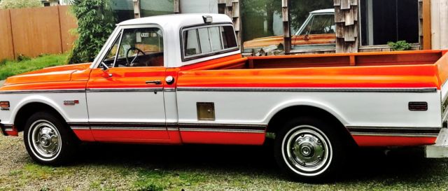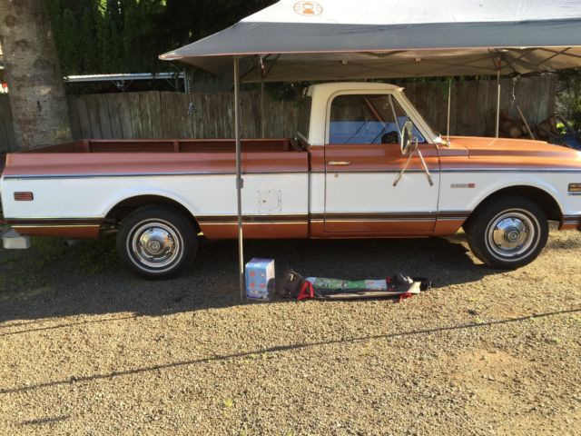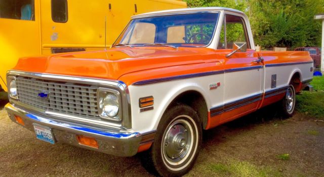 Truck was purchased from the estate of the original owner. truck was sold originally out of Encinitas, CA, and was then transported to Bend, OR and spent its entire life in the high desert in a heated airplane hanger. at the time we purchased it, the truck had 98,000 original documented mileage. We have the very rare original GM Protecto plate from the factory! we personally drove the truck when it rolled over 100,000 miles. this truck has absolutely ZERO rust, repeat, ZERO rust, and has never had any rust repair of any kind, ZERO body filler on this truck. the truck got its first repaint in Sept of 2016. the truck was competely disassembled, and professionally repainted, truck has all its original factory sheet metal, with the exception of the passenger rocker panel, which was replaced only because it had adeep dent, not for rust issues, this truck has NO RUST....with all new body trim, grille, emblems etc. with the exception of the paint job, this truck is completely unmolested in anyway. Factory AC blows cold, and heater core was replaced when the truck was painted. all new door seals, windshield, flow master true dual exhaust, new edlebrock carb and intake, HEI distributor, battery, plugs, wires etc. We have the original intake, carb and distributor etc. we installed the new parts when we purchased the truck, as we drive it daily....the engine is otherwise original and untouched, runs/drives perfect, and gets tons of attention everywhere it goes. to be a "show truck", it will need the interior finished, it has a new dash pad, but the seat has a small tear and it needs a new headliner. The other item to be finished, is the inside of the bed, we used this truck to haul lumber and building materials, so we didn't repaint the bed inside, but planned to rhino line or paint it after our house was built, but now you can decide...either way, it's a cheap project to make this clean original truck show perfect.