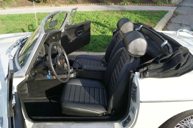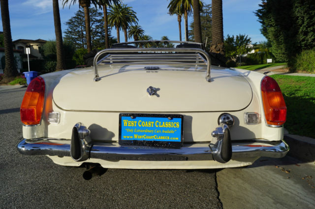 West Coast Classics are proud to present a great daily driving example of this 1973 MGB Mark III 1800cc Convertible in 'White' color paint with a 'Black' interior, a black soft top, highly desirable original factory wire wheels and it's original factory spare wheel in the trunk. All the options are working as they should including all gauges and lights. This is one very nice example of this classic British sports car - a rust and accident free example of the legendary chrome bumper Mark III MGB roadster! The trunk, floor boards, rocker panels and all the typically rust prone areas are all solid and rust free, the chrome is good and the car still boasts both of its original 'Lucas PL700' tripod leadlamps. It is of note that the car was ordered radio delete, in fact a rare option! The 'White' color paint is in good condition with only very minor imperfections noticeable upon very close inspection. The soft top is also in very good shape with a crystal clear rear window. The wire wheels were an optional extra. This car has drives very well with no known issues! The engine purrs quietly under the hood and the 4 speed manual transmission shifts smoothly through the gears - an absolute pleasure to drive! The temperature always remains cool and there are no noticeable oil leaks. The simple uncluttered lines of the early MGB's were never improved by later revisions (the MGB line survived until 1980) and it is still these early models, which were a sturdy, straight forward sports car with features that will fascinate enthusiasts for decades to come, that are most sought after by MG enthusiasts and collectors. There was no denying the appeal of the MGB which in almost all respects; performance, comfort, space and convenience was a distinct improvement on its predecessor, the MGA and despite of little or no profits being returned to British Leyland, the model enjoyed record sales for the company. Without a doubt you will look hard to find a better daily driving example of this rare piece of British motoring history - perfect for the MG enthusiast or any classic British car collector!For further information contact West Coast Classics through EBay or on 310-399-3990 during regular California business hours.