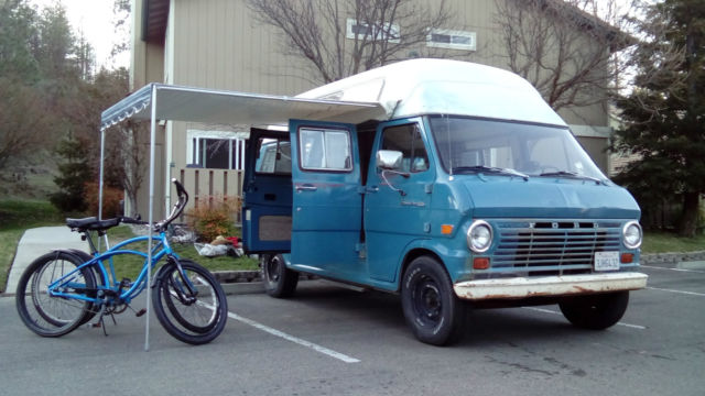 FORD ECONOLINE E200 SUPERVAN 1969 302 V8 Three on the tree, manual, no SMOG required, California vehicle. Clean title. Current tags. Camper van. Motorhome. Surf bus. Day Van. Engine runs very strong, starts right up, will go all day long. Rebuilt gear box, new clutch, refaced fly wheel, rebuilt steering box, new water pump, new belts, fluids, all new ignition, plugs, points, wires, Brand new battery. All receipts to prove. Additional gauges, oil & water, very accurate fuel guage. Brakes are good, parking brake good, all lights, indicators etc work as they should. 4 nearly new tyres, good spare, drives straight. Workshop manuals, service guide, clean title, current tags and insurance. Original keys & spare keys We have been everywhere in this van in the USA and down through Mexico, this van is very strong and has proved this. Full tool kit included, socket set, wrenches, grease gun, screw drivers, electrical testers, spare bulbs, gas can (full). 2 ton bottle jack, Spare oils & fluids, Heavy duty jump cables, snow chains (unused). Garmin satnav, 2 years old and Guide books. 100 LTR underslung water tank Great little kitchen, sink, tap, cooker, 3 hobs and oven. ( I made my best lasagne ever in this oven! ) Propane gas tank in a separate cupboard. 80LTR cool box, all the camping gear, kettle, pots, pans, cups, glasses, cutlery etc all clean and useable. Interior lights and a tow bar. Also.... It has a great fold out awning that zips away into the bag mounted on the side. Good over head storage and cupboards. Would easily carry surfboards, wet suits. Windows and doors all open, close and lock easily. All mosquito screens are intact. Two beach cruisers included !! One is brand new, both have good tyres, chains and ride perfect, one has a basket. This a great 'go anywhere' little van, good to rock up at the beach or mountains, spin around on captain chairs (the front chairs swivel) fire up the stove and enjoy the view. You can stand up inside this van. The patina is perfect ! It has spent all of its life in California. It has NO rust holes, the paint work really wants clear coating as it is to preserve the look forever. The interior wants tidying up & stylising, something really kitch? Some new curtains, and the front seats recovering, it would look amazing! Needs new front window runners. The windshield has a crack on the passenger side but it has always been the same so we didn't change it. We have the best time with this little van but we are returning to the UK, it needs a new owner to enjoy and love this piece of the California dream as much as we have. Please email if interested. We are on the road until the 12th March so may not be able to pick up emails every day, then we will be in Carlsbad for a week if you want to view the van. Very reliable genuine van, no time wasters please. Any inspection welcome. I wouldn't hesitate to drive this van across the country tomorrow.