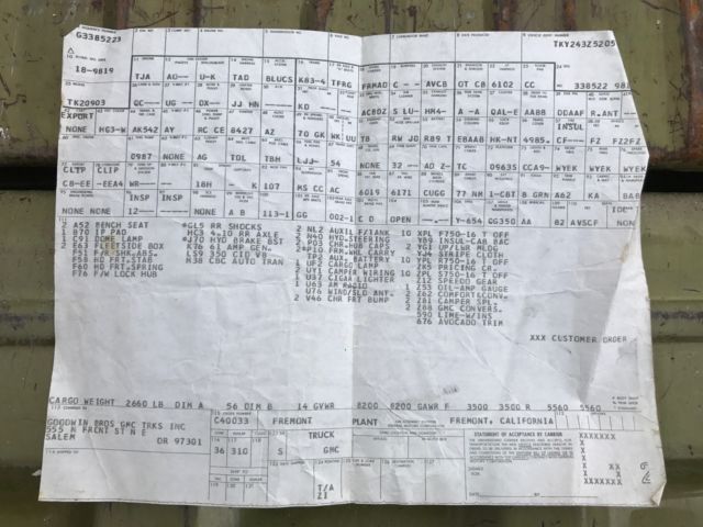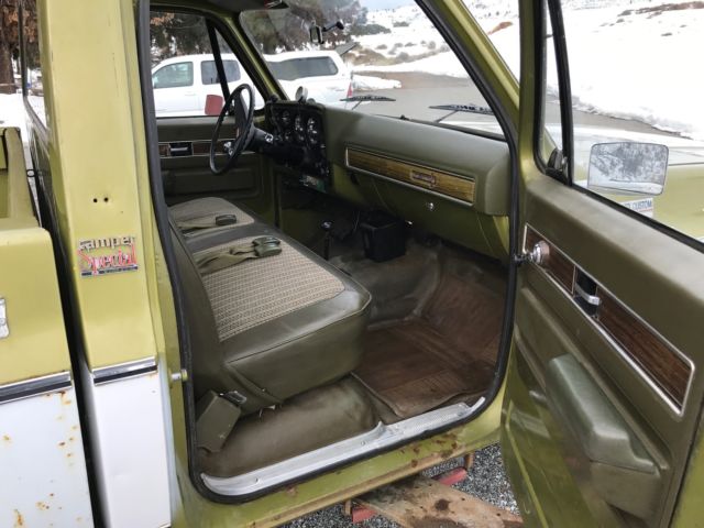 This is an amazingly clean truck for its age. I am the 3rd owner. This truck was bought new in Oregon and eventually moved to Stehekin Washington. Stehekin is a very secluded town at the end of Lake Chelan. There is literally only 8 miles of road there, hence the low milage. It was parked in a barn in Stehekin for most of its life. The original owner was very meticulous about keeping record of everything that was done to the truck. I have a record book from him of every single thing he ever did to it, things as simple as changing light bulbs.(see pictures) I used it for my primary transportation for the last year and it starts first time every time. It is super reliable and does amazing in the winter. If you are looking for an all original square body this is one of the best ones you will find! Build SheetOriginal ManualOriginal Bill of SaleOriginal New Vehicle Warranty PamphletOriginal Maintenance Schedule Pamphletoriginal paint.Small surface rust under doors & no rust repair.Phenomenal, preserved/survivor condition.Remarkably unmolested.Rare options package highlights include:Power SteeringPower BrakesTwo-tone Lime Green/White with Avacato Green interior color combo350 V8 Turbo 350NP205 Transfer CaseDuel Tanks(Left side currently not working/ worked when I bought it)Camper Special3/4 ton 4WDWarn Winch and bumperSlide out Door Steps(check out the Inner fender options list in the pictures below for full list).Truck runs and drives beautifully. To get behind the wheel and go for a drive is truly a mind blowing step back in time to when these trucks were new. Super straight with amazing surviving paint (even the inside of the bed is exceptionally straight).New PartsBoth front wheel bearingsAlternatorFull Rear BrakesMaster cylinderWater PumpPointsCap and RotorPlug WiresEdelbrock carburetorBluetooth receiver that looks like original am radio (still have the original am receiver)Under Dash SpeakerTires Toyo AT 2