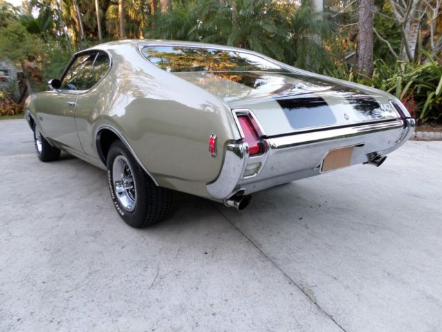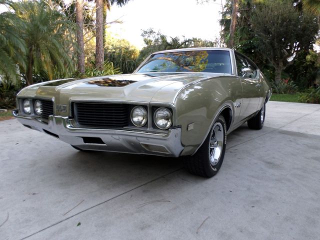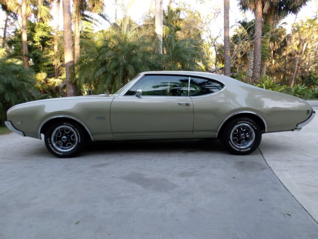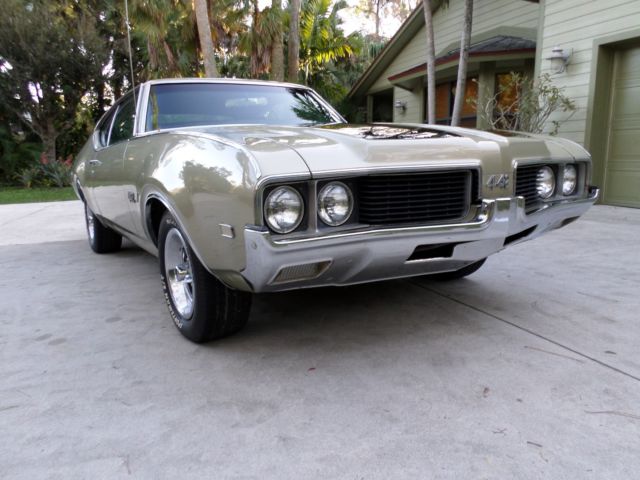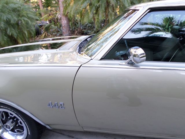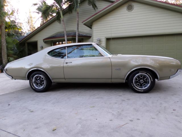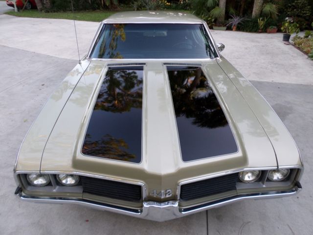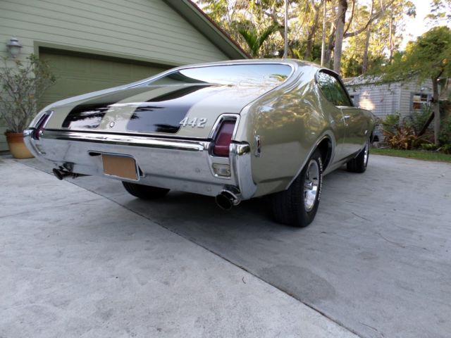 compared to other competitors, the 1969 442 fast back coupe had just about the nicest interior and exterior trim packages ever.HIGHLIGHTS :* Highly original condition with its original drivetrain* Has all original matching number parts - engine, transmission, rear axle* It is a second repaint of its original (code 63) gold color* Believed to be a no hit body, has all of its original sheet metal* Southern car stored in-doors with straight No rust chassis* Original GM interior from steering wheel to carpeting* Very long list of the best Factory Options : ie.* 400 c.i./ 350 HP * Heavy duty radiator* Muncie M-20 4 speed * Anti-spin rear axle* A/C * PS * PB (disc) * FE-2 suspension* Center console * Tilt steering wheel * Rally pack gauges * Am/Fm radio/ rear speakers * Shoulder harness seat belts * Original embossed floor mats * Tinted glass * Black body striping* Super stock wheelsComments:This vintage muscle car has that rare nostalgic feel to it , it reflects that ERAwhen cars had real character.Recently this car was carefully fitted with the highest quality suspension parts tomaintain the quality of its ride, having the FE-2 suspension option - GM quick ratio PS box, heavy duty stabilizer bars, HD front and rear coil springs ,HD shocks, new low profile 60 series tires.Really No Two Cars are alike and this car handles with ' a super nice road feel 'stays glued to the road at high speeds , very neutral on fast turns with almostno body dip at all. And from the 'looks of the car' it always gets attention from people of all ages.Thanks.( NADA guide for this vehicle for average retail is $ 44,800. )Price $ 37,900. ( negotiable ) Will sell soon , Call Joe : 561-712-1313