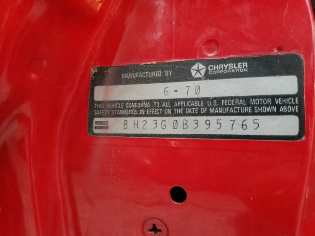 | Year: | 1970 | VIN (Vehicle Identification Number): | BH23G0B395765 |