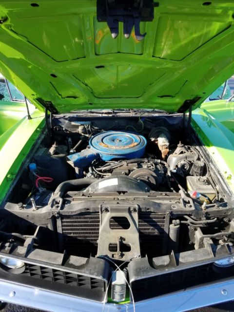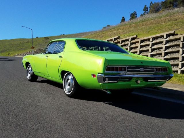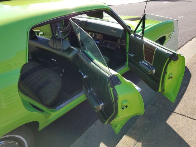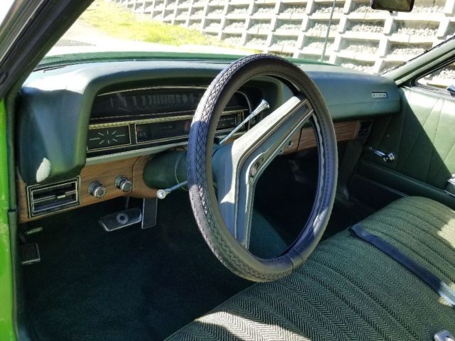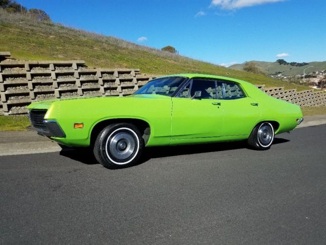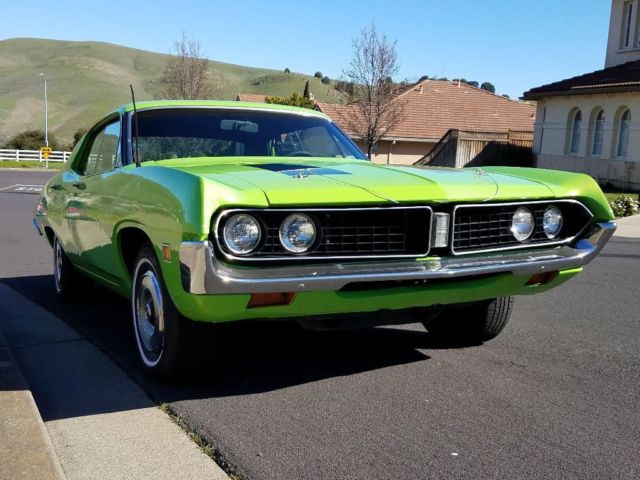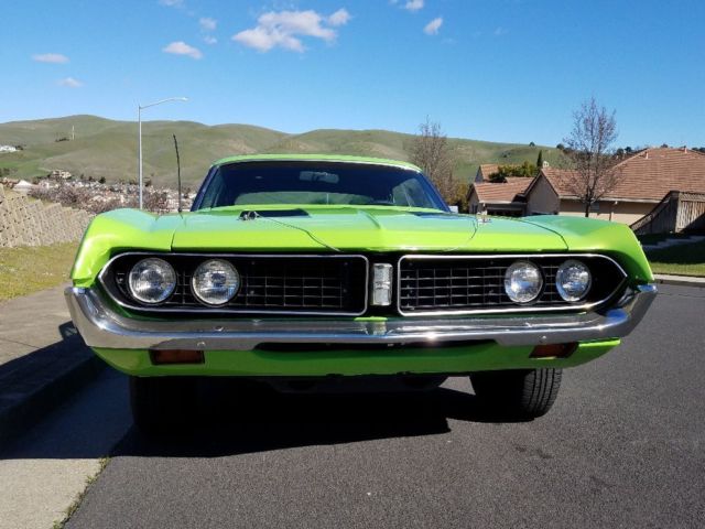 This vehicle has a brand new paint job (candy green with gold sheen), and a reupholstered green interior. This vehicle also has a Kenwood CD player and two new Pioneer speakers in the rear deck tray - the original 1971 radio has been left intact for aesthetic preservation. This vehicle is sitting on stock 14 inch wheels, and has year-correct full wheel covers sporting the classic Ford Torino emblem in the center. 1971 was a very beautiful year in terms of the front end styling for this particular car, with the divided front grille ornamented by the Ford center emblem and flared out headlight housings. In 1972 they changed to what is referred to as the "fish mouth" front end. You will be very hard pressed to find any imperfections in this paint job or with the upholstery work in this vehicle's interior. This car starts up turn-key with no problem, and growls with a slightly modified throaty set of exhaust pipes. Otherwise, this car is completely unmolested. This car is perfect for any individual who would like a ready-to-go muscle car that is reliable, can be heard blocks away, and looks absolutely stunning!!! - when you find yourself in the land of the "Chevy, me too!"...This car DEFINATELY stands out! - especially with the pillarless frame.This car is currently registered and fully insured, as it has been as long as I have owned it. To be quite honest, the only reason that I am getting rid of this car is because I recently picked up a one-owner 1972 Gran Torino in bronze (not a Gran Torino Sport, but still..."get off my lawn!" - Clint Eastwood...lol). It makes my stomach cringe to see this car leave, but I know that somebody else will be able to enjoy it as much as I have - Spring and Summer are fast upon us. Also, 1971 is the last year that the automotive industry was not affected by the environmental and gas crisis. It was also the last year that bumpers were not mandated to have those little 5 mile-per-hour rubber stoppers.Please feel free to contact me through eBay if you have any questions about this vehicle prior to bidding. Bitter-Sweet loss for me, but Good Luck!!! (Keywords: 70, 1970, 71, 1971, Ford, Fomoco, Fairlane, Torino, Ranchero, Brougham, Sport, Gran Torino, Cobra Jet, Donk, 302, 351, 429, Alligator, Crocodile, Electric Green, C6, Rally, Muscle Car, Race, Racing, Ford, Edsel, Mustang, Maverick, Mercury, Cougar)