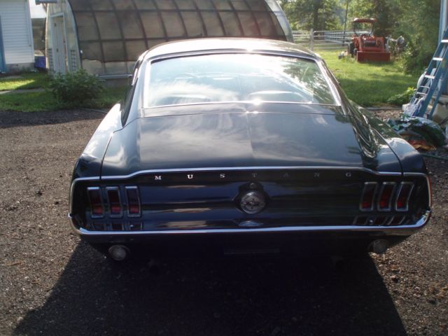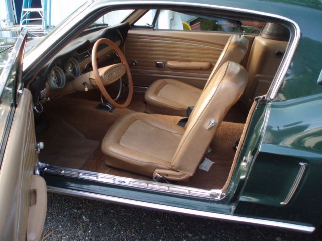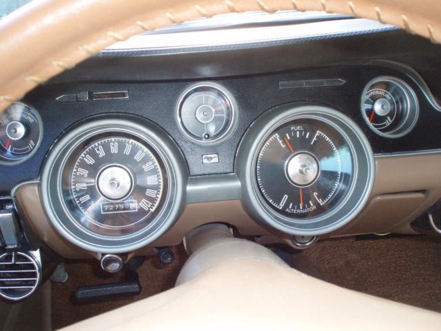 This Mustang is in very good condition with hardly any rust on the frame and a small rustout on the front bottom of the right side door. There are also some scratches on the right side of the car. The right rear quarter panel had some damage that was expertly repaired, there are no waves or scratches. The rest of the car is virtually rust free. It has recent seat covers and exhaust system and the engine runs strong. The air conditioning does not work; it is not hooked up. Some front end work was accomplish with new bushings, wheel alignment and shock absorbers. The car drives straight and true. The rear shocks were replaced with a set of air shocks so the height can be adjusted. A new fuel tank was installed and all the gauges work. All of the interior and exterior lights also work and many of the bulbs were replaced with LED types. A new front carpet, a new dash and a new gauge cluster goes with the car. A replacement hood with the scoops and signal lights has been installed (after the photos were taken) but the original hood also goes with the car as does a working radio that is appropriate for the car. I would continue to restore this car but I'm just too old anymore and I've lost too much flexibility in my joints to be bending over for a repair effort. If you're looking for a solid car this one is for you. I am not familiar with all the numbers and codes but I've been told that they do match.