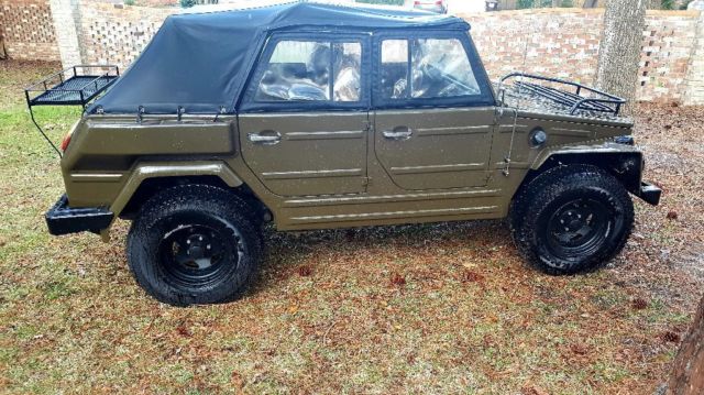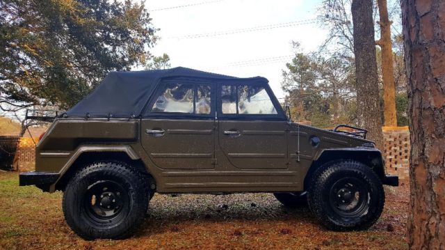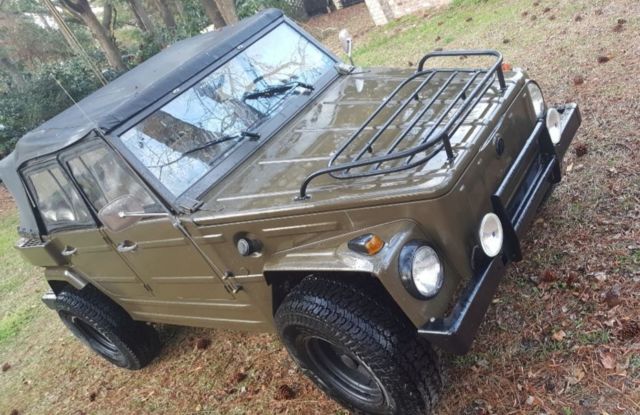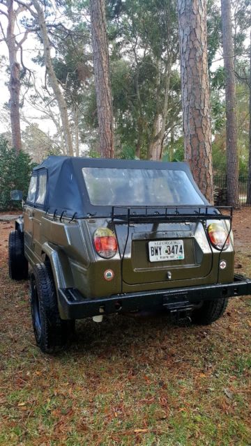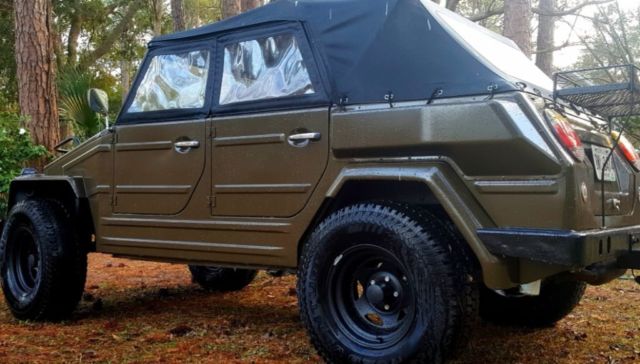 Comes with too many extra parts to mention- over 1K worth of extras including chrome extras, mirrors, exterior gas tanks and manuals and another set of tires and rims. Car was driven as a prop in 2 recent movie sets filmed in Savannah GA- The Spongebob Squarepants Movie and Baywatch. It has a hitch and has been used to pull a trailor with RV equipment like dirtbikes and waverunners to the beach. It can go from that to keeping up with traffic on the freeway, no problem- modernized for versatility. Garage kept but we've had fun with it too- and we've maintained it so there's plenty more life left in it for you! Everything restored. You will NOT find a higher functioning, restored to original VW Thing out there with this degree of attention to detail! From private collection of classic cars exclusively offered to the perfect buyer. Additional details will be shared with serious bidders only.As a free service to you, we will help facilitate your delivery by locating several choices for shipment with the highest standards at the most economical choice. Shipping cost is buyer's responsibility but we will help you every step of the way for a white glove delivery.