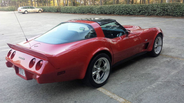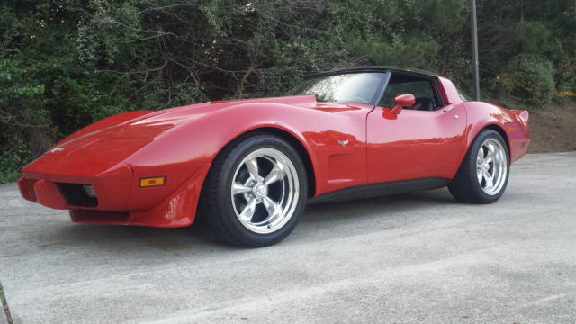 1979 Corvette restored with some bite! Finished the car about 2+ years ago only driven 900 miles since built.Best of everything and too much to list.I just completed another and have no room for both.I built the car for myself and is done right.Bought the car and was a little rough.Pulled 350 engine and transmission,replaced everything but crank and block as you can see in before and after pics I added alum cylinder heads also,cam,lifters,roller rockers all the good stuff.Block casting #3970010 1969-72 Camaro and Corvette block Summit K-375-400 upper engine kit/Hooker competition titanium headers Holly 750 Ultra double pumper.went through TH350 Transmission added shift kit/Kevlar clutches/front pump/gear set with 2800 TCI stall.Runs good/no leaks/pulls very hard !! Will flat out launch you.... color was changed from black to red and you can see in the pics car was totally disassembled and done the right way when painted.Paint is a solid 10 no blemishes or scratches,always kept indoors,had ceramic coating added to paint a few months after.all weatherstripping and glass seals replaced.no gaps/no fillers.New front and rear bumper covers,new spoilers,new 3 inch Cowell hood..car was sanded down and prepped correctly.all lights/trim/doors removed for prep...Complete interior was replaced,dash gauges,carpet,storage bins,door panels,upper trim panels,window regulators and motors seat belts and latches,console,Fitted aftermarket sound system..Mirrored T-Tops are brand new... not going to sit here and list everything I put into the car so if you have any specific questions I will be happy to give all the tech data you need..Lowered it a couple inches and hugs the road on American Racing Torque Thrust Wheels 255/45/ZR18 Nitto Fronts...275/45/18 Rears,less than 1000 miles on tires. Suspension is mostly stock,replaced power steering components .Car has factory A/C but compressor is missing,can easily be added.There are 2 links at bottom I posted the video the day I got her running,then went to body shop for about 8 months and one just the other day..She gets lots of attention and sounds even better true duals with 2 chamber Flowmasters.You can not build this car for what I am asking.Tach seems to read higher than it should,showing 51000 miles not sure if it has rolled over is the only disclaimer I have .Come and take a look for yourself..Car is located in Marietta,GA 30066 I will be happy to help with shipping,But you can drive this one home no matter where you live .. I urge you to see her for yourself and take her to a good home please as it is killing me to sell her ! Any questions message me.So much detail on this car I am sure I have left something out.You can show it or cruise.leave your number if you need a call.Feel free to ask any questions.....Sold as is copy link>>>https://youtu.be/pkcQLYULie4 copy link>>>https://youtu.be/bYSG7V2k06s
