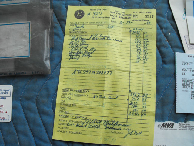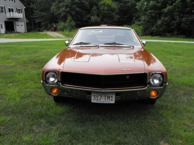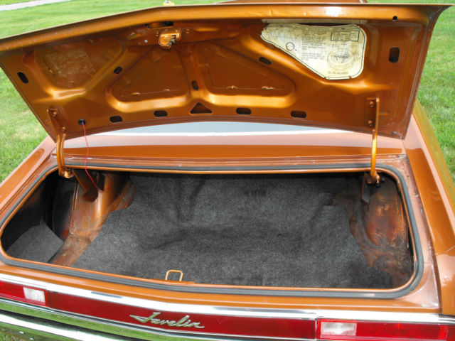 History - first owned by an unmarried couple for the first 5 years, the couple kept the car in a garage except when used. They paid $3302.50 for the car, The original bill of sale and other paperwork are included in the sale. Later an elderly (probably my age) man owned the car for 15 years. During which he only put 3,000 miles TOTAL on the vehicle. He maintained the Javelin METICULOUSLY. Fran Knapic was the 4th owner. He also loved and ensured that the maintenance was continued during his ownership. He really thought that he would keep the Javelin forever.. He decided to sell the Javelin in 2015 when my husband, Gary, purchased it one month prior to being diagnosed with Stage 4 Lung Cancer that metastasized to his brain, Gary was so excited about the Javelin and also kept vigilant in his responsibility to keep this CLASSIC - perfect. Before he died he had the windshield wipers replaced, coolant thermostat and Temperature sender replaced, the V-8 fuel pump double actions for the vacuum wipers replaced, front pinion bearing, front and back gas shocks, new battery and fuel pump and trunk mat replaced. And now it is time to hand off the baton.. Hopefully you are the perfect HEIR for this wonderful Javelin.. He is so perfect..hope you give me a call. As a disclaimer - Fran and Scott (a former bidder) both have given me counsel and information to place the Javelin for sale..If you want to contact Fran - he is willing to talk to you about the Javelin franandnan@netzero.com Diane