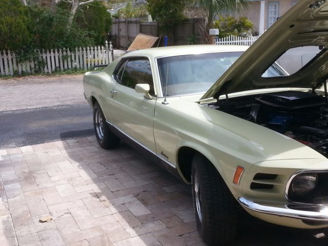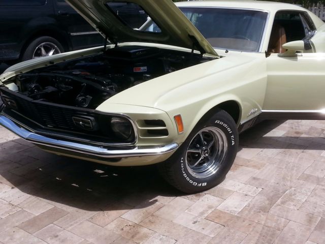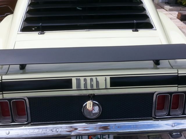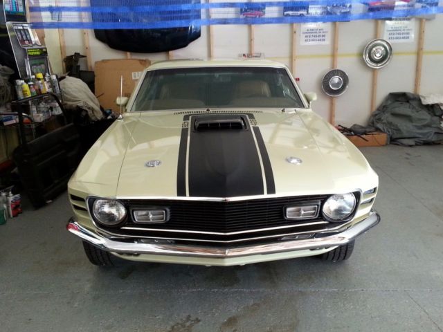 1970 "R" code 428 CJ WHAT A HEAD TURNER THIS IS! Completely original car has been repainted, factory Light Ivy Yellow. This vehicle is 1 of 151 in the world according to the Deluxe Marti Report. 23,271 original miles guaranteed. According to the Deluxe Marti Report, the VIN # decodes as follows: Serial Number OT05R140271O 1970T Built at Metuchen05 Mustang Mach 1 Sports RoofR 428-4VCJ Ram Air140,271 Ford production #12/69 Built December 196963C Mustang Mach/Sports Roof2 Light Ivy Yellow paint Ford #3071-A3F Medium Ginger Clarion knit/Corinthian vinyl bucket seats0 3.0 Traction-Lok Axle ratio6 Four speed close ratio manual transmission24 Jacksonville ordering district 100% numbers matching.This vehicle has Everything that could be kept original has been. This is not an "over restored" survivor. The original motor was bored .30 over and completely rebuilt. There are less than 300 miles on rebuilt motor. My price represents the average of the excellent and good values in the March/April CPI value guide. We have the Deluxe Marti Report and an authentication letter from Elena A. Ford, Director of Marketing Sales and Service from Ford Motor Company. I have nothing to hide with this restored survivor. Please ask any and all questions. This vehicle is stored in my collector air conditioned garage that is located 4 miles from where the upcoming Barrett Jackson Palm Beach Auction will be held. I would strongly suggest any serious buyers drop by, view and test drive this impressive vehicle. I have been told by 2 tire kickers that the mileage has been turned back on this vehicle. IT HAS NOT. I will pay for an automotive appraiser to verify authenticity of mileage. This will occur after a $10,000 deposit has been paid. Please contact Jon at 561-301-0659 with any questions.