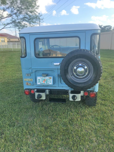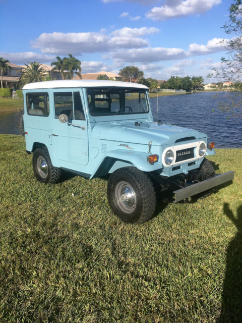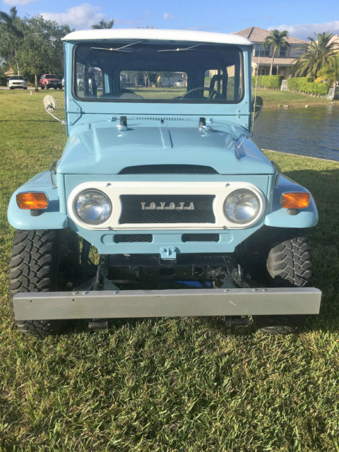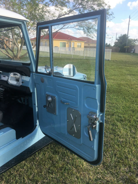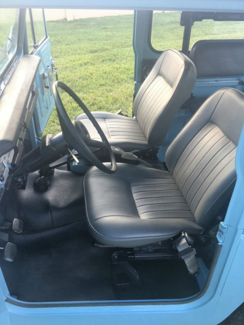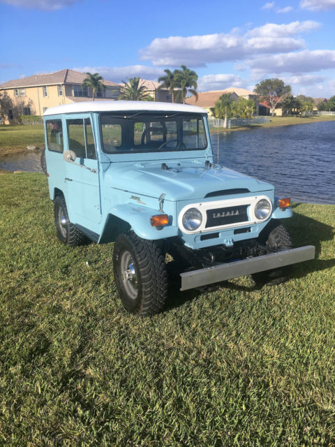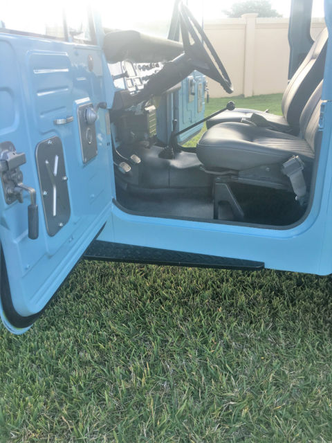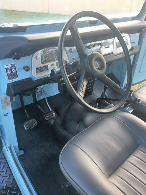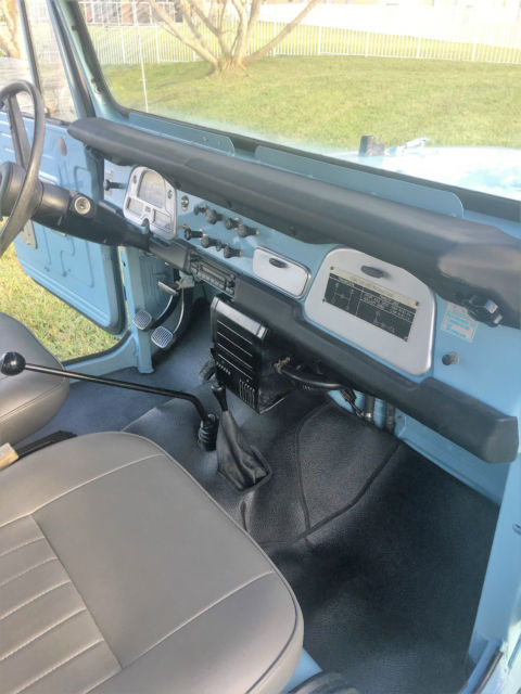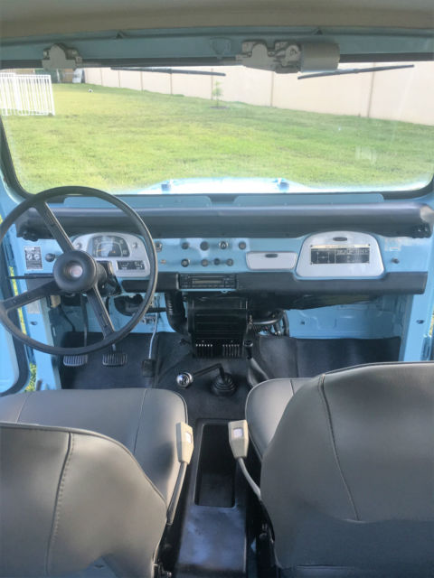 1973 was a very rare year for the fj40 , It was the last year of the 3 speed transmission, as well as,one of the last years for the original color (capri blue) .Last year for the 3.9 liter "f" engine, Last year of the 3 speed transmission, transfer case with the 2.71 low range (some say this was the last year of the miitary spec land cruiser ) This fj40 has Matching numbers frame , body and engine for Collecctors Hands down one of the nicest land cruisers on ebay Check out our work at our shop cleancruisers.com We are also one of the only shops offering a 3 month warranty on mechanical/electrical work The bottom end of the engine was recenty rebuilt with no run time / The top end was complely redone recently as well , basically has a complete new motor New Clutch slave ,pressure plate , clutch disk , clutch master cylinder , clutch lines The Transmisssion was fully inspected with very low miles / All seals where replaced The Transfer case was in the same condition perfect order with both input/output seals replaced . As well as new parking brake shoes The axles had the seals replaced as well Every complete Component of the Braking system are brand new .... The paint is Beautiful original color as well. The entire truck has new wiring throughout ,including OEM resistors and OEM plugs The vehicle was painted with the motor out to get a show quality finish / including undercarrage/engine bay/inner fenders etc The fj40 has brand new shocks all around including a rebuilt steerig shock system The entire exhaust system is brand new with OEM muffler OEM stickers where applied as per factory specs. New headliner/front seats uphostered / rear seats original but repaired First year of the factory roll bar as well every panel on this fj40 is brand new with panels from a rust free fj40 not the cheap thin metal sold in many places. Every light and reflector / knobs are OEM new, no expense spared Factory toyota Radio with dual pioneer speakers new custom floor mat for the front on the vehicle This fj40 also has almost new 31x10.50x15 mud terrain tires, no dry rot on factory original rims with new OEM hub caps All body mount and bushings where replaced when the frame off was completed my number is 954 439 2576 my name is Daniel , cleancruisers.com and this is by far the nicest fj40 on ebay !! Thank you for looking