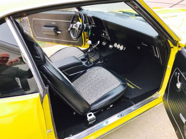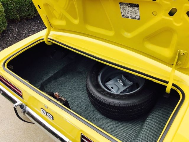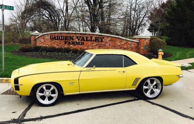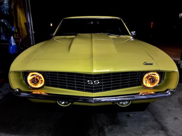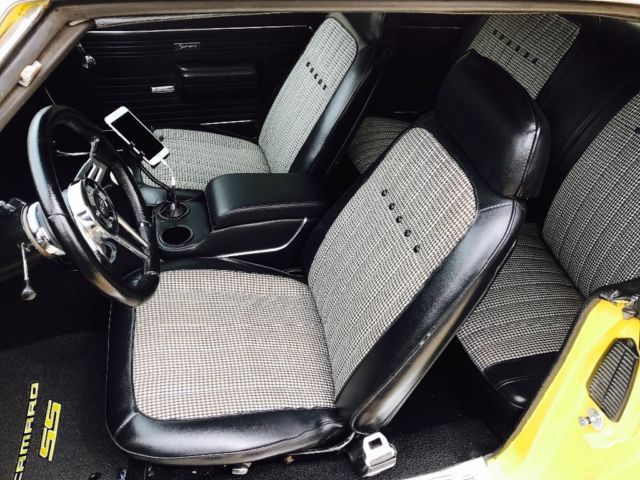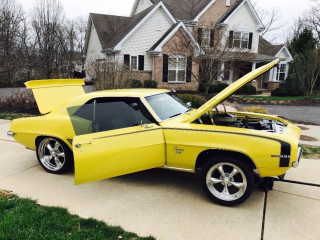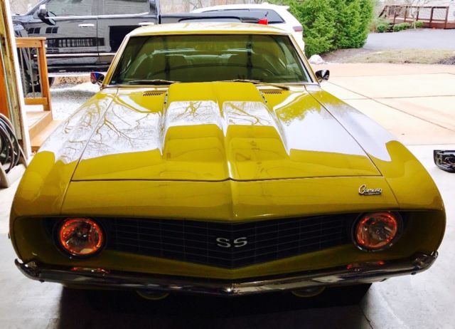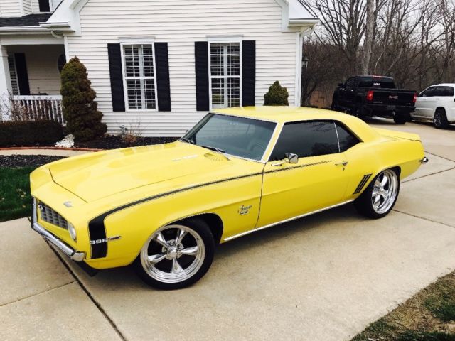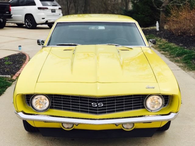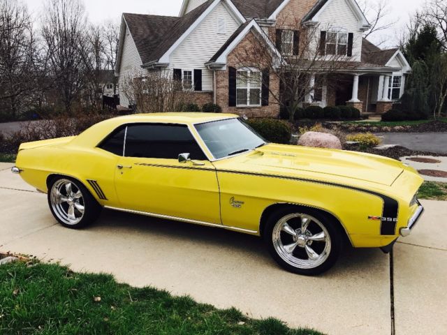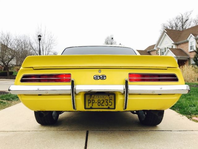 This car is a beauty, Dayton Yellow, 1969 SS Camaro, with power steering, a 454 pump gas, chevy engine and 4 speed Muncie trans with 12 bolt rear end! - 454 big block Chevy engine on pump gas - not a race car engine but plenty of power for the street.- Aluminum intake. - Edelbrock carburetor.- Nice drivable cam shaft with great lop sound (watch and listen to video)- Aluminum radiator with billet cap - New Aluminum radiator filler panel with round dimpled holes. - New Billet CNC hood hinge set.- New Hooker Ceramic coated headers. - New Flowmaster mufflers with duel exhaust ran out the back of car. - Power Steering. - 4 speed Muncie transmission.- 4 speed Hurst shifter- New 12 bolt billet differential cover with gear oil - Houndtooth seats - New front seat belt set- No rust under car and undercoating to protect rust prevention.- New Classic Car Stereo system by Autosound with Aux cable to connect all cell phones and ipads. - New cell phone car holder- New Center console two cup holder and arm rest.- New Red led dash and gauge lights.- New Octane headlights with Amber led halo rings.- New SS trim and emblems.- New American Racing 20" wheels 18 x8 on front and 20x10 on rear.- New performance tires - 20-35-225 front and 20-30-255 rear.- car is lowered 1.5" for great look. - New disc brakes on front and drum on rear.- New power brake booster and master cylinder (this car stops and brakes like a 2018 camaro) - New 35% window tint.- New Lloyd Camaro SS floor mats - New front spoiler and braces - Clear Tennessee title.- 12 bolt Chevy rear end with polished billet cover.- all lights, turn signals, brake lights, and windshield wipers work. - trunk mat - spare tire.- 2 set of keys- Heater in car works great (no AC)- "1969" Tennessee license plate.- New oil change and filter.- New mirrors (2)- electric cowl hood vent Check out this YouTube walk around video of this awesome 1969 camaro!https://youtu.be/pCGjFkqQsTYPlease don't hesitate to contact me if you have any questions! Barclay W. Gebel