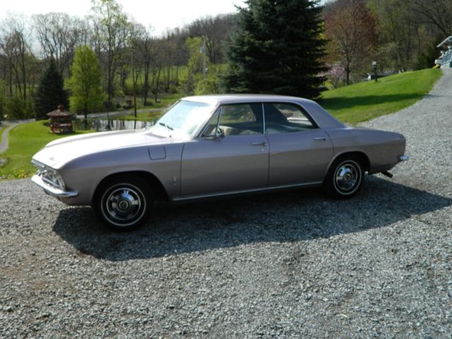 Up for sale is a classic cruiser, a 1965 Chevrolet Corvair in the original color called Evening Orchid. We have taken her to cruise ins, car shows and on Sunday drives. It really looks nice along side those Corvettes. We always got a lot of compliments on the way the front end looks, and people really admire the sweet color. We've gotten lots of thumbs up while cruising down the road. With four doors it is very convenient to take passengers to the cruise ins. It also has an automatic transmission making very easy to drive. This car came from down south in MS. A non-refundable deposit of $500.00 is due at time of purchase via PayPal. The balance due will be paid by certified/cashiers check within 10 days of purchase. Check must be cleared before vehicle can be picked up. Corvair must be picked up within 30 days of purchase unless otherwise agreed upon by seller. Buyer is responsible to arrange and pay for shipping. Buyer can have a third party check vehicle over before purchasing. Vehicle is being sold as-is, where-is, with no returns, no exchanges, and no warranty.
