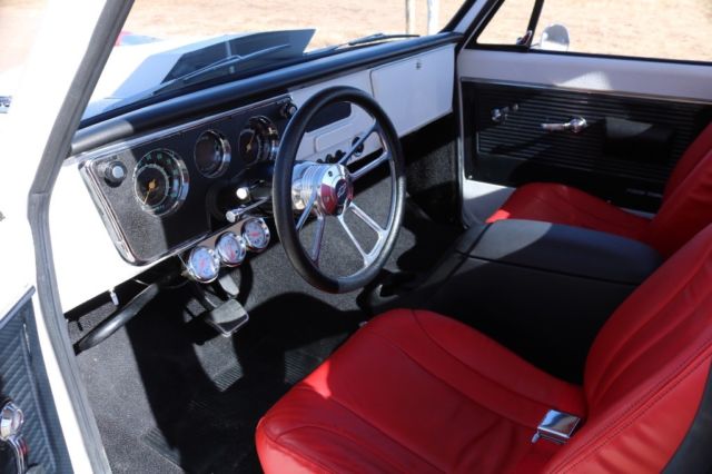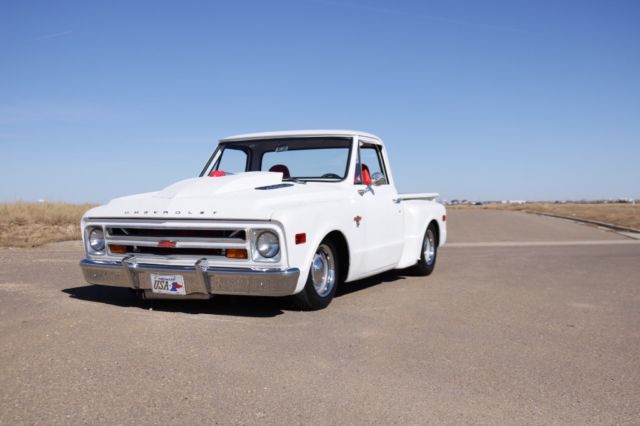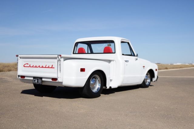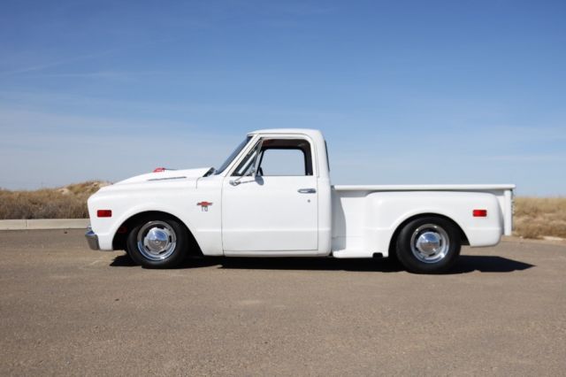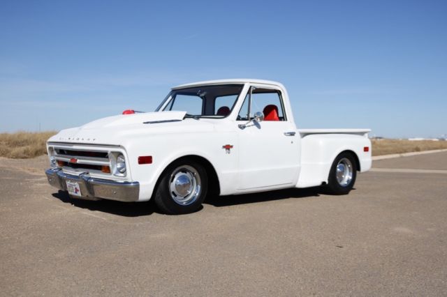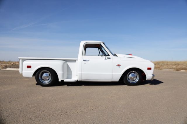 Relisted because someone pressed the buy it now button. Please only press buy it now if you intend to buy the vehicle. Thank you. 1968 CHEVROLET C10 STEP SIDE SHORT WHEEL BASE/BLOWN W/TWIN TURBOS/AIR RIDE/AIR BAGS( COMPLETELY RESTORED AND RESTOMODED) NEVER RACED OR BEEN ON THE TRACK. VERY DRIVER FRIENDLY. RUNS GREAT.454 BIG BLOCK STD BOREIRON HEADS671 BLOWER62MM TWIN TURBO'S WITH INTERCOOLERSCAT CRANK, SCAT RODSSEAL POWER PISTONSNEW INTAKE VALVE 2.190NEW EXHAUST VALVE 1.880COMP CAM .522 IN AND .507 EXHNEW SPRINGS MATCH CAM850 DEMON BLOW THROUGH CARBURETORJETS FRONT 90 REAR 95 TIMING 32 DEGREESPUMP GASTWIN ELECTRIC FANSNEW ALUMINUM RADIATORTRANSMISSION 400 TURBO AUTOMATIC WITH SHIFT KIT410 GEARS WITH MINI SPOOL WITH DANA EYE CANDY COVER12 BOLT REAR END2500 TO 2700 STALL CONVERTORTRACTION CONTROL BARS MOUNTED TO FRAME4 WHEEL AIR BAG WITH GAS SHOCKS AND ADJUSTABLE FRONT AND BACK TO LOWER IT OR DROP IT ON THE GROUND20 GALLON ELECTRIC AIR TANK FOR AIR RIDENEW VINTAGE HEAT WITH DEFROSTPUSH BUTTON STARTKILL SWITCHBATTERY RELOCATEDNEW STAGGERED RALLY RIMS AND NEW TIRES--15X5 FRONT & 15X10REAR WITH MICKEY THOMPSON TIRESNEW CAB MOUNTSNEW ROCKER PANELSNEW DOOR SKINSNEW CAB CORNERNEW CARPET WITH SOUND PROOFINGNEW GLASS ALL THE WAY AROUND WITH NEW GASKETSPAINT IS GM WHITE WITH HIGH GLOSS COAT PROFESSIONALLY DONE. RAPTOR BED LINER. ALL NEW INTERIOR, LEATHER SEATS, CENTER CONSOLE, GUAGES, AND DASH PAD. FEEL FREE TO CALL 8062362366. THANK YOU.https://m.youtube.com/watch?feature=youtu.be&v=6kQZawDIT7s