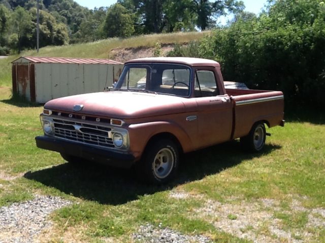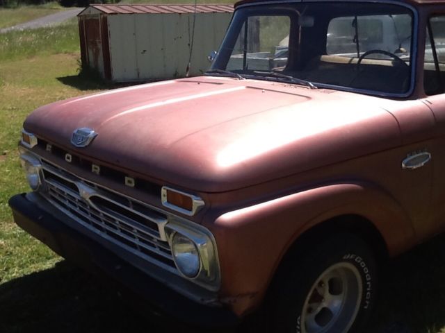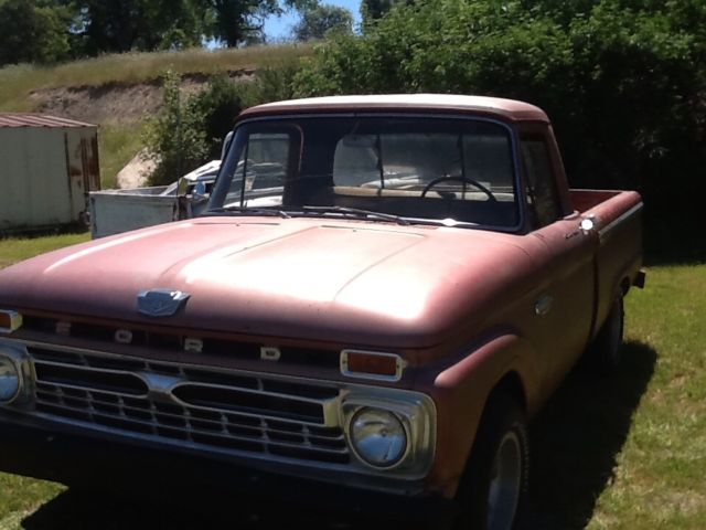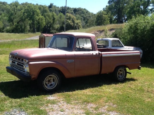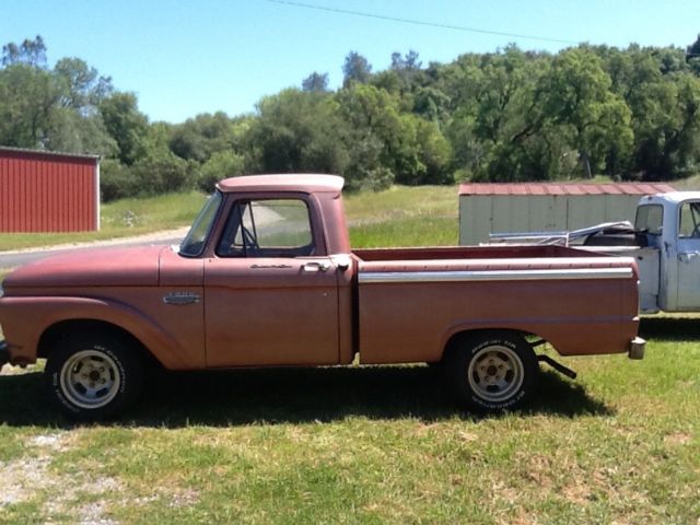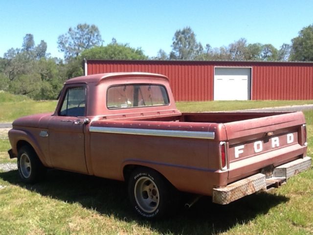THIS IS A CUSTOM CAB SHORT BED WITH BIG BLOCK 390/C6 TRANS Original paint great solid and rust/ cancer free we are helping a friend of ours sell this truck. here is the run down. 1966 ford custom cab short bed 390 fe big block with a c6 automatic trans it has newer set of bfg tires on it with the old style alum mags. the truck runs great fires right up the truck is rust free with exception of a spot in the bed the body is in great shape with exception of a dent on the pass side front fender. Rockers are rust free Floor pans are rust free all lights work turn signals work. has a 8 track under dash player has a old cassette deck under dash player. also has stock am radio in dash . dash has not been cut Seat needs to be redone Original steering wheel has dual exhaust but has a minor exhaust leak might be a collector not sure does have headers and turbo mufflers truck frame is solid and has no rust issues. body and bed are in great shape see the pics. I can send you walk around video of the truck or pics from any or all directions. This is a old original truck that is in great shape. clear/ clean CA title on non-op. Signed off and ready for new owner I WILL WORK WITH YOUR SHIPPERS IF YOU CHOOSE TO SHIP. YOU CAN COME IN PERSON AND PAY AND PICKUP YOU CAN COME LOOK B4 YOU BUY YOUR CHOICE.. PLEASE LOOK AT MY PRIOR HISTORY TO SEE THAT I SELL ONLY REAL..AND WELL EXPLAINED CARS OR TRUCKS I WOULD BE GLAD TO SPEAK WITH YOU AND GIVE YOU ANY MORE INFO I CAN PLEASE GIVE ME A CALL.....TEXT ME OR EMAIL ME THRU EBAY THANK YOU, BILL @ (209) 304-7352